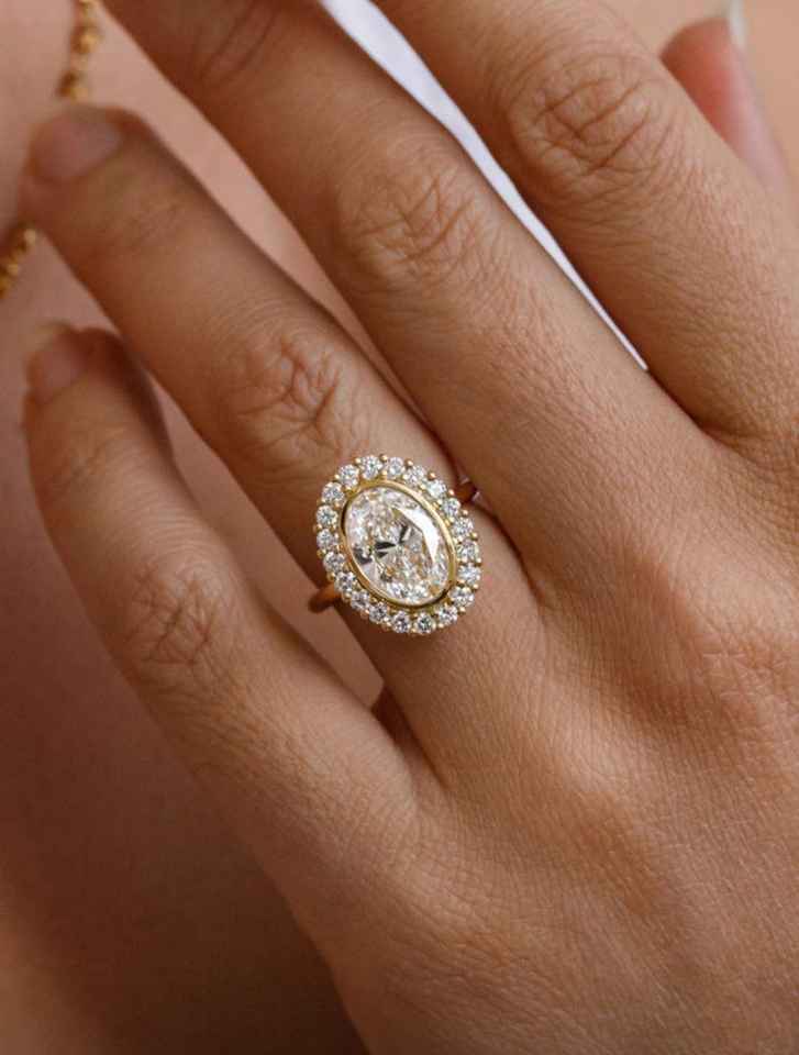 แหวนเพชรทรงไข่ ประดับเฮโล ดีไซน์คลาสสิก