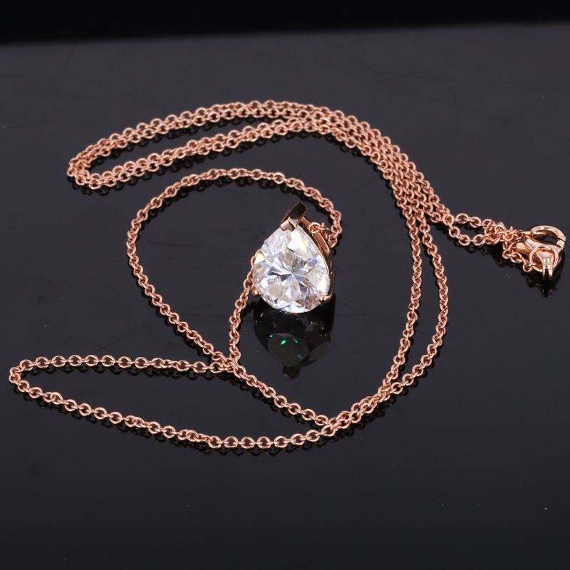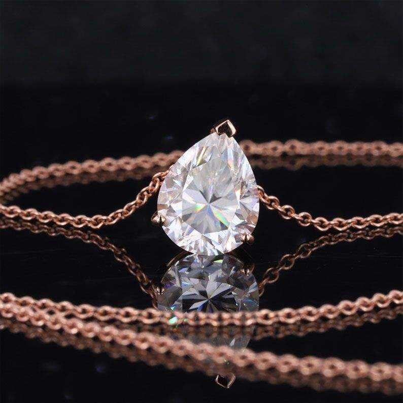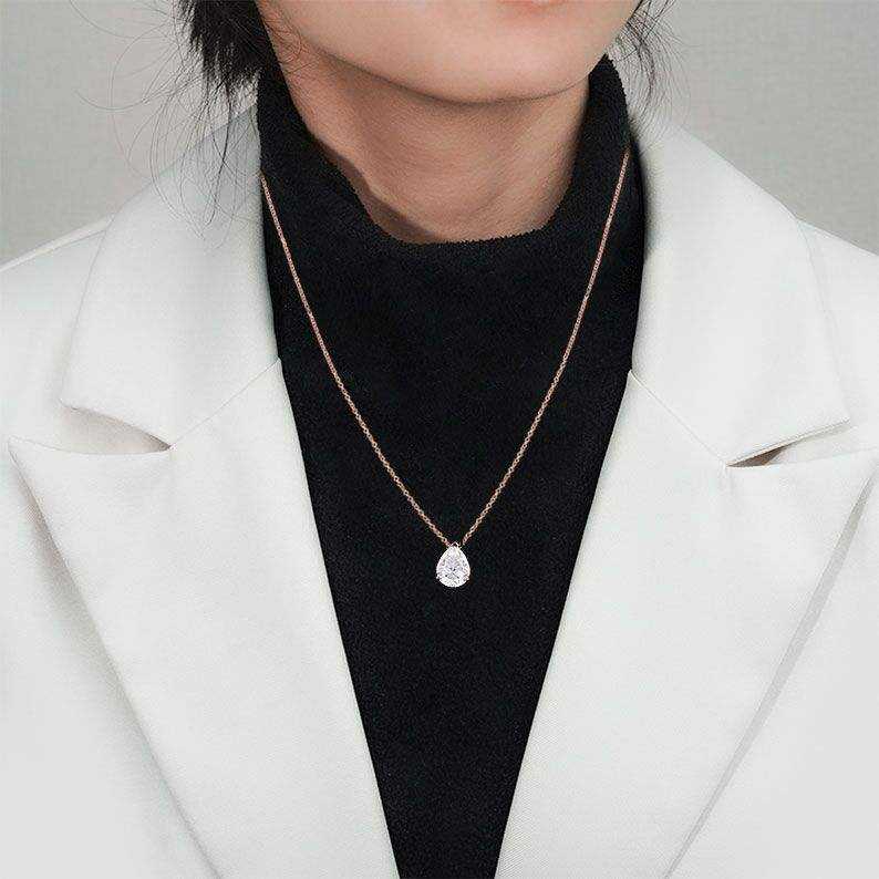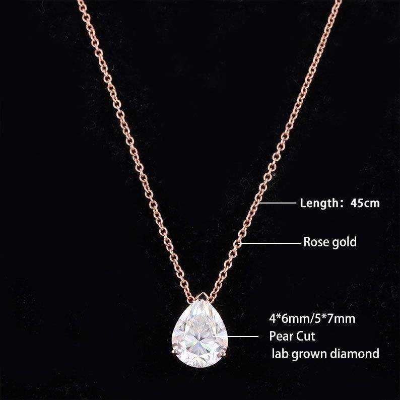 จี้เพชรทรงลูกแพร์เพาะเลี้ยงในห้องปฏิบัติการ ได้รับการรับรองจาก IGI ตัวเรือนทองคำ โรสโกลด์ ไวท์โกลด์ หรือเงิน สี D-E-F ความใส VVS-VS พร้อมสายสร้อย