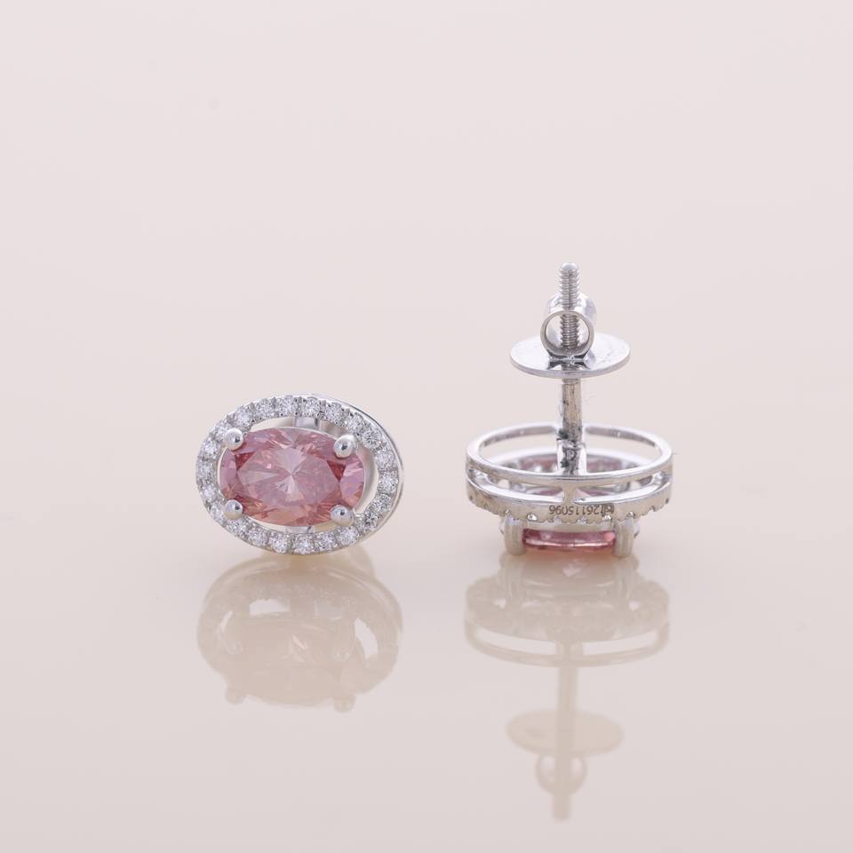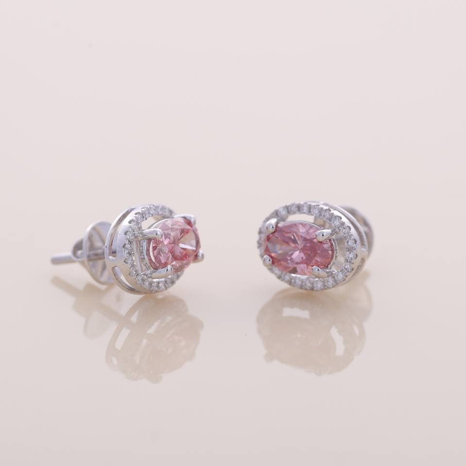Keyword:Lab Grown Pink Oval Diamond Halo Stud Earrings