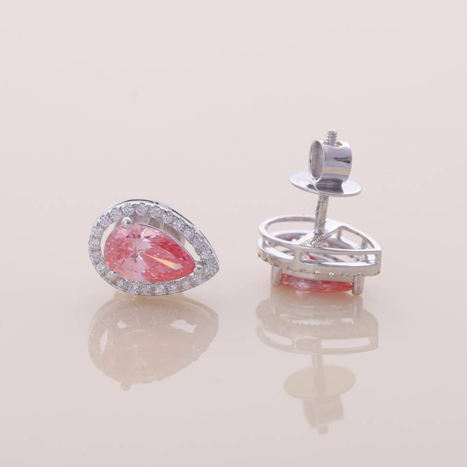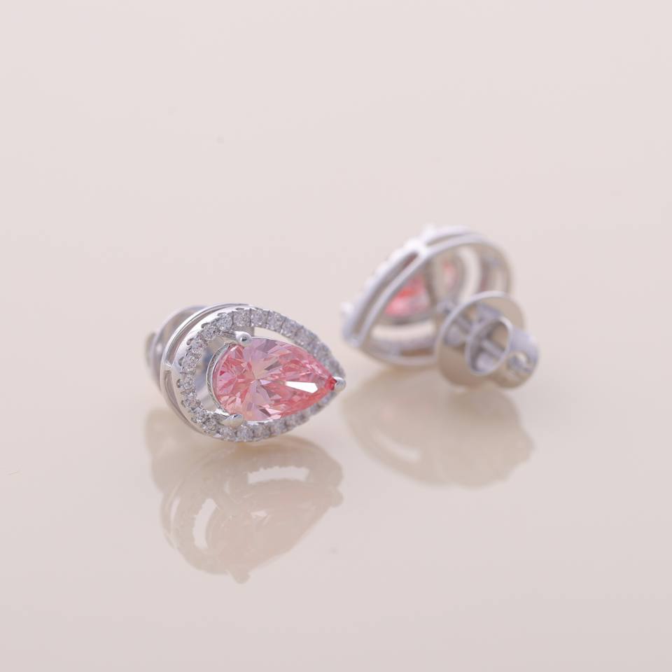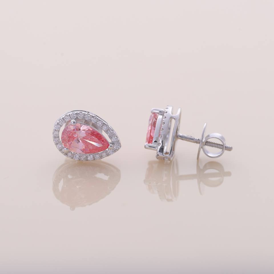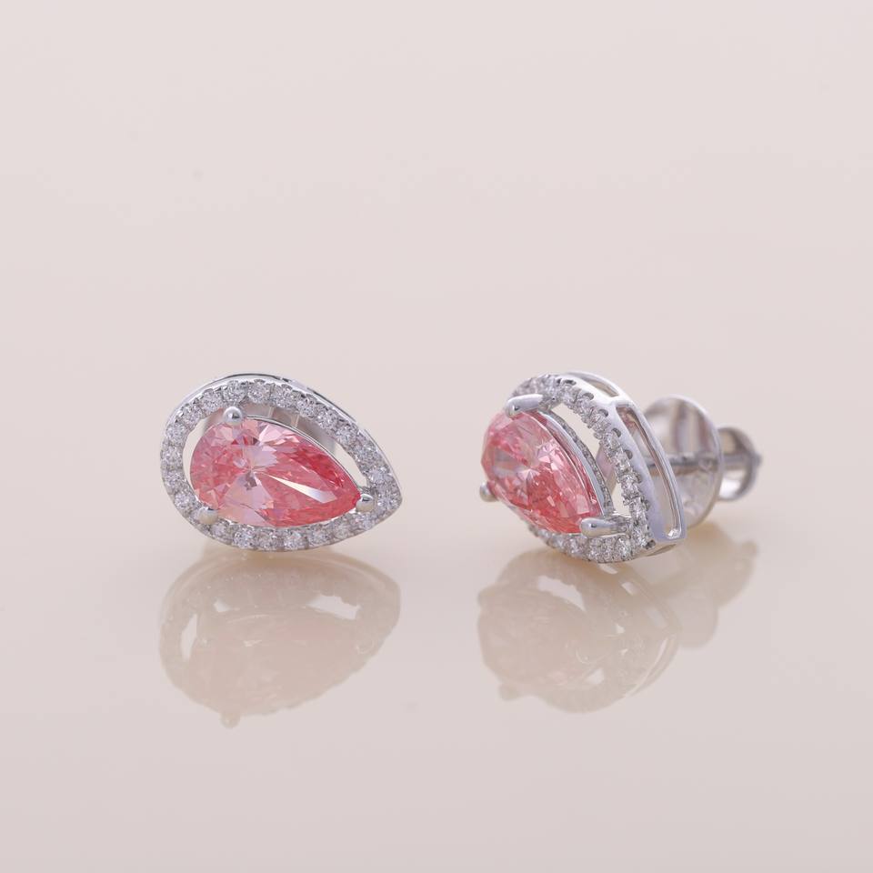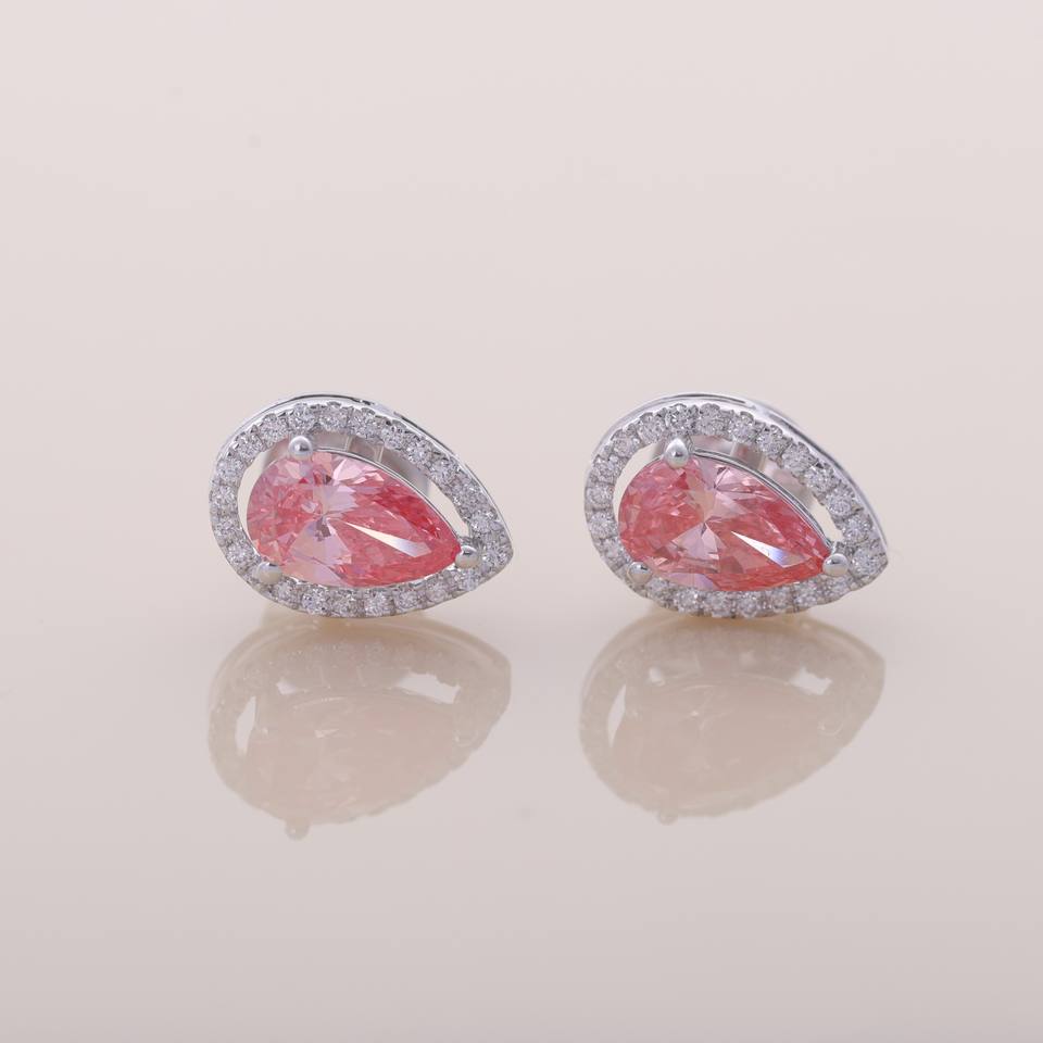 Keyword:Lab Grown Pink Pear Diamond Halo Stud Earrings