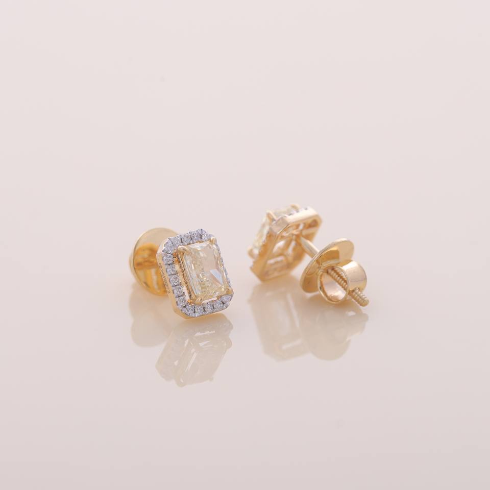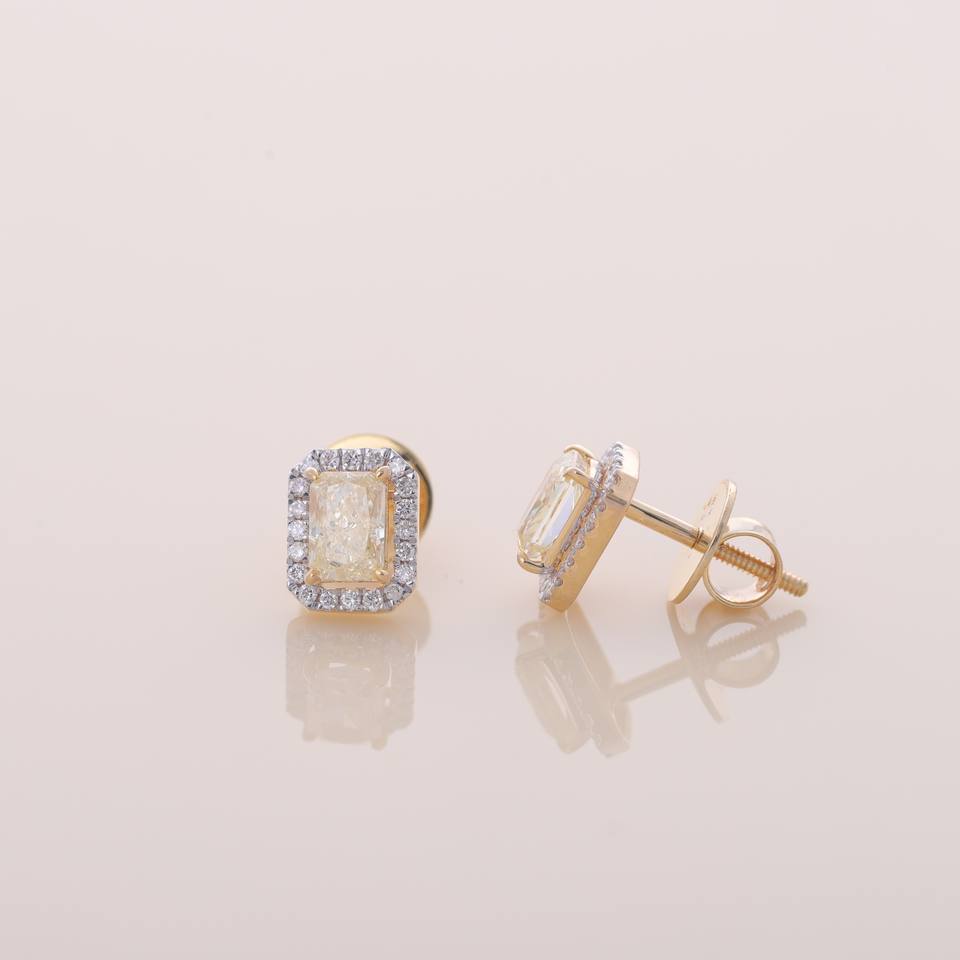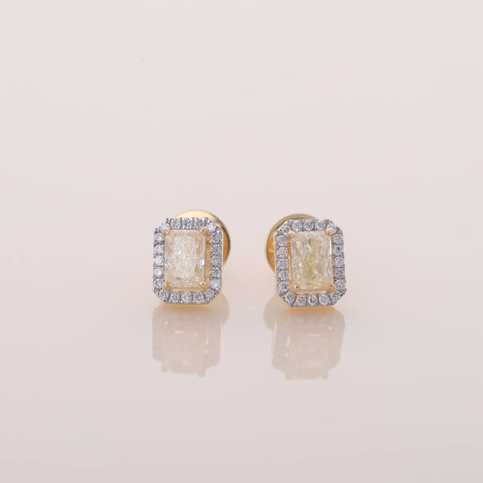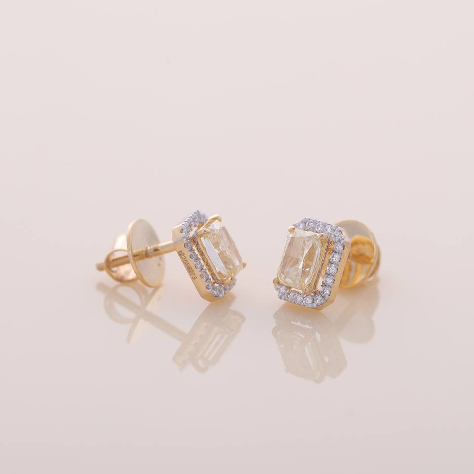 ต่างหูเพชรทรงรัศมีสีเหลืองเพาะเลี้ยงในห้องปฏิบัติการ ได้รับการรับรองจาก IGI ตัวเรือนทอง 9KT สีเหลือง / ขาว / โรสโกลด์ ต่างหูหรูหรา
