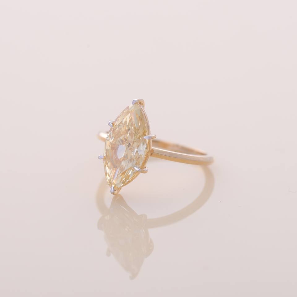 Keyword:Marquise Cut Yellow Diamond Solitaire Ring