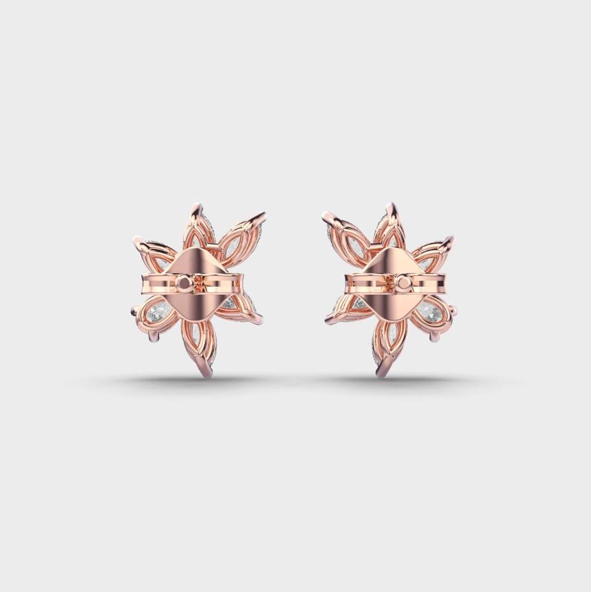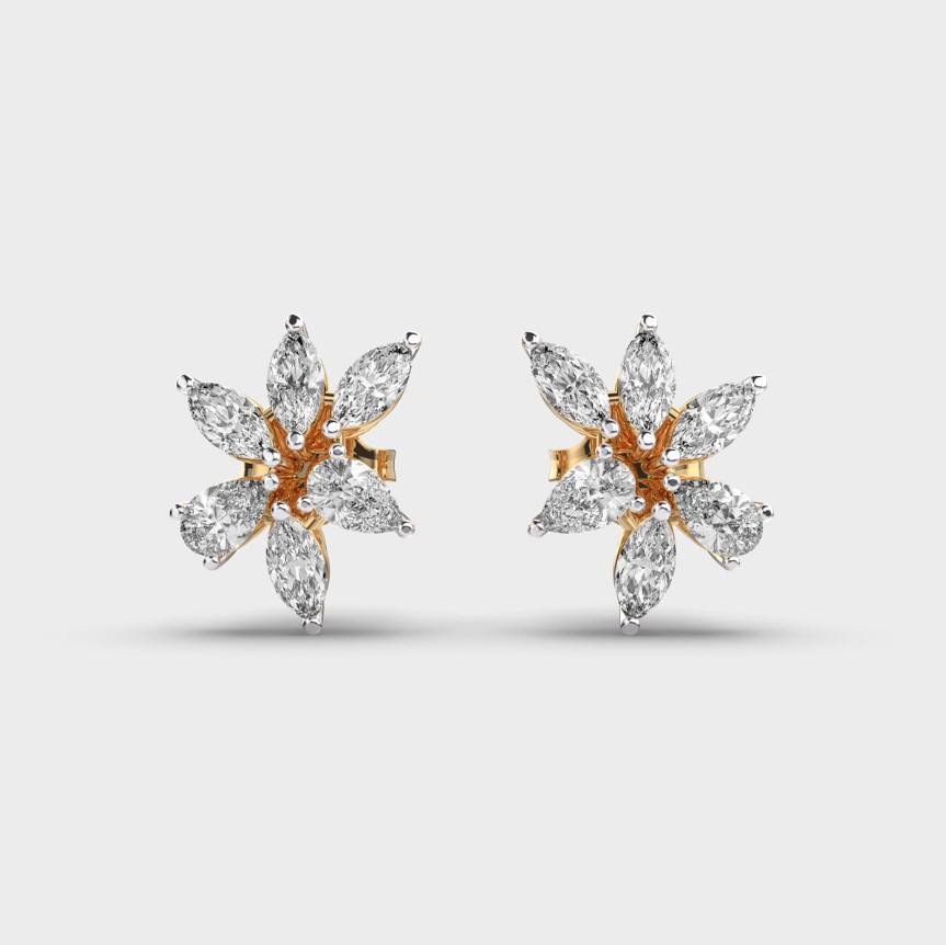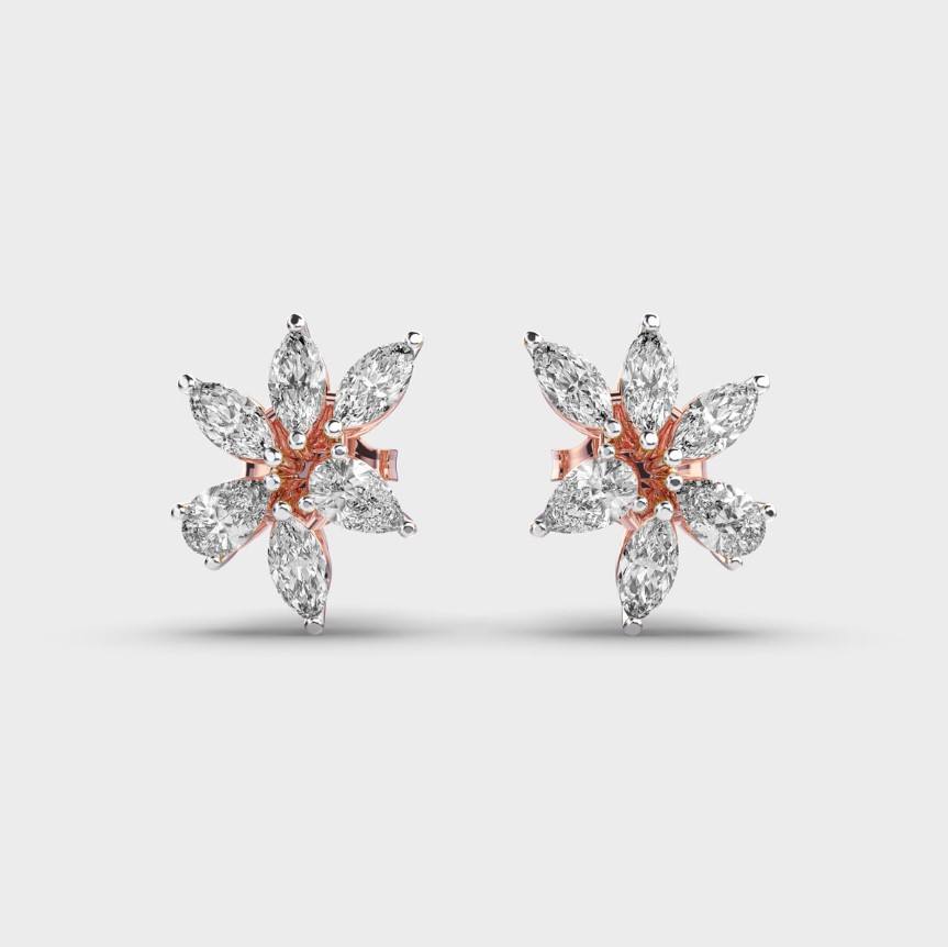 Keyword:Lab Grown Marquise & Pear Diamond Floral Cluster Stud Earrings
