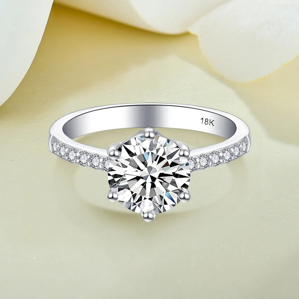 แหวนมอสซาไนต์รับรองโดย IGI แหวนเพชร VVS ทอง 18k ทรงโซลิแทร์ บริลเลียนท์คัท แหวนหมั้น แหวนแต่งงาน เครื่องประดับชั้นดีสำหรับผู้หญิง