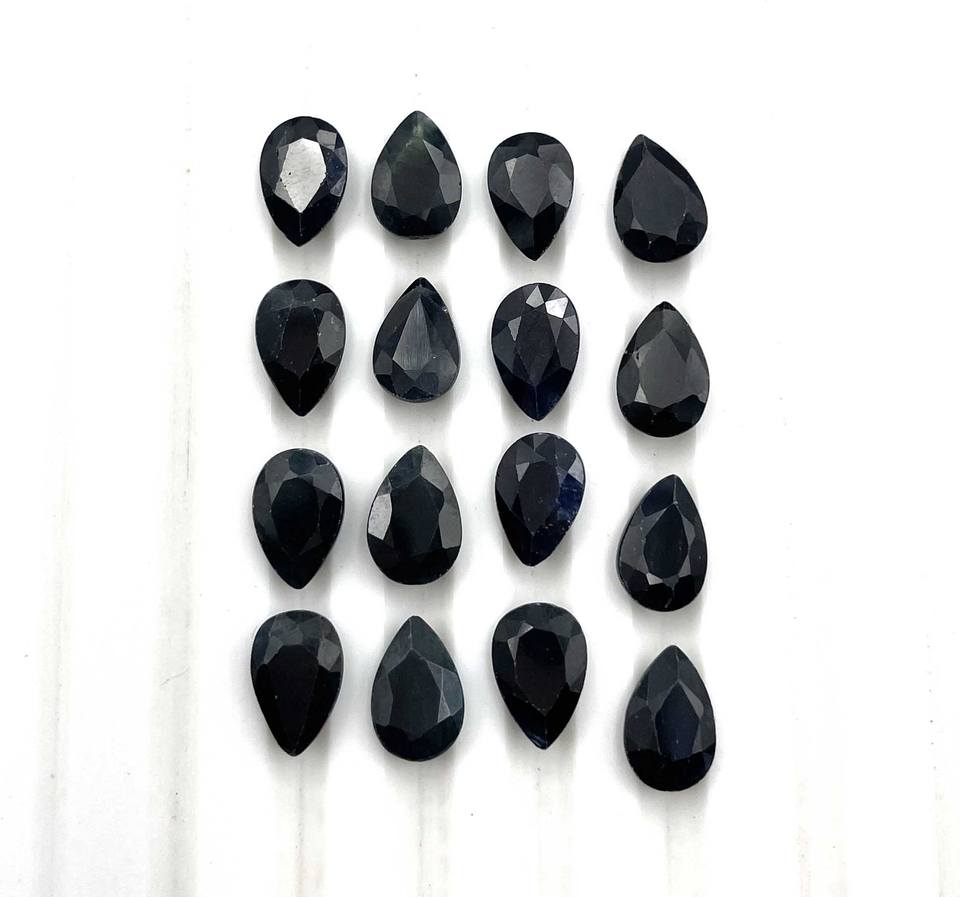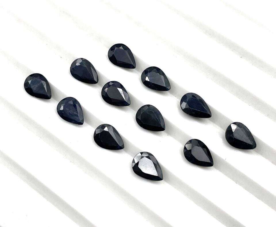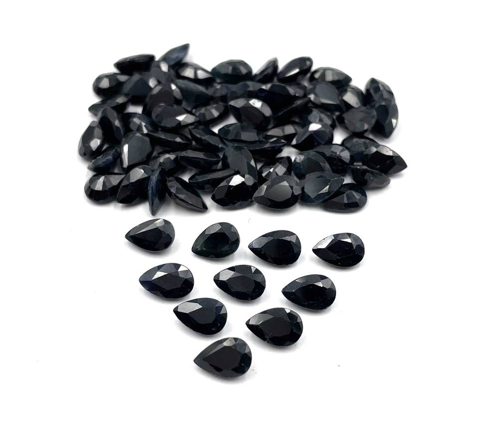 ลูกแพร์ไพลินสีดำธรรมชาติที่ผ่านการรับรองจาก IGI ตัดอัญมณีขนาด5*7-6*9มม. สำหรับการทำเครื่องประดับอัญมณีจำนวนมาก