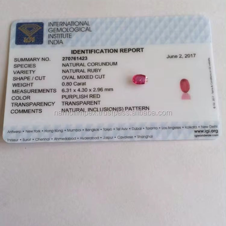 Igi ทับทิมธรรมชาติที่ผ่านการรับรองรูปไข่ตัดอัญมณีสีแดงจากประเทศโมซัมบิก