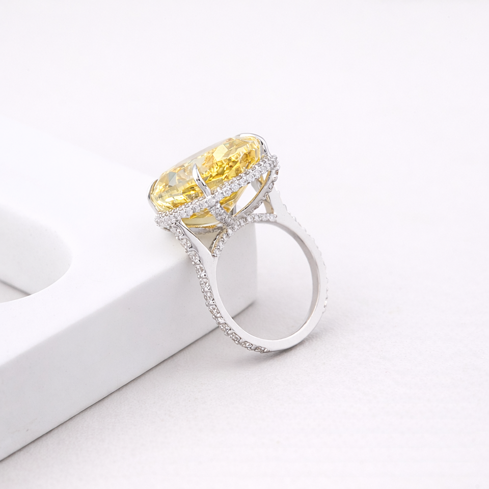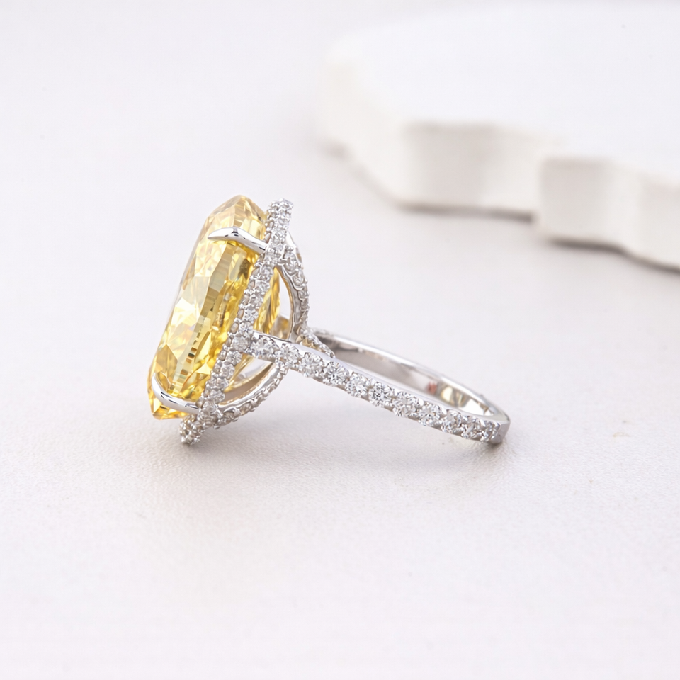 Keyword:Fancy Yellow Oval Lab Diamond Halo Ring with Diamond Pavé Shank