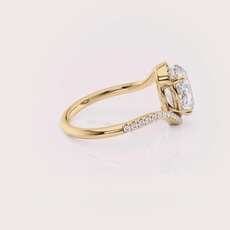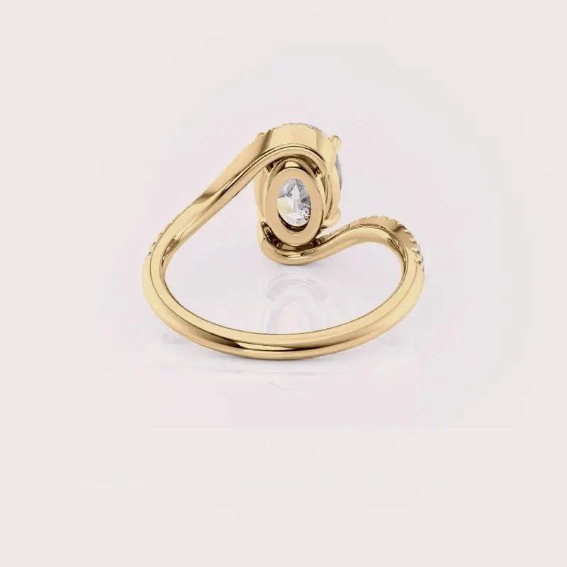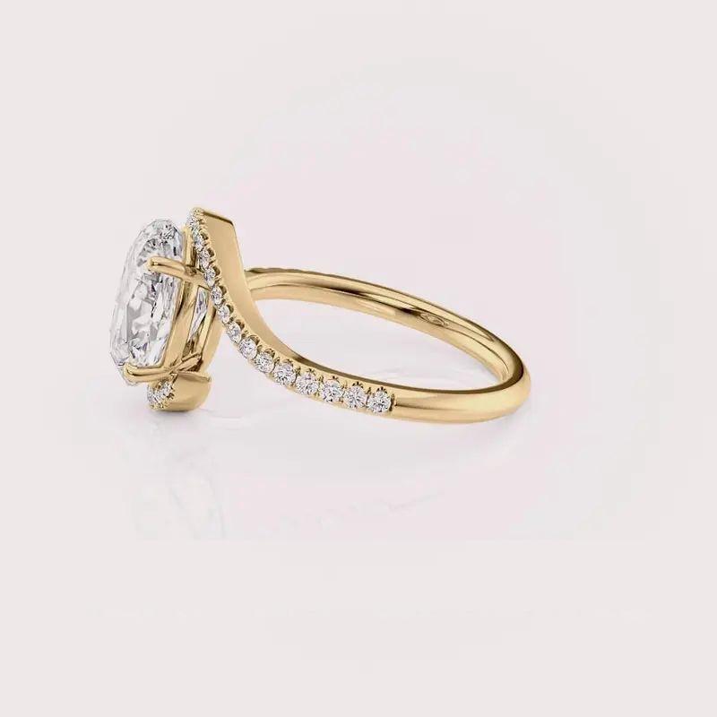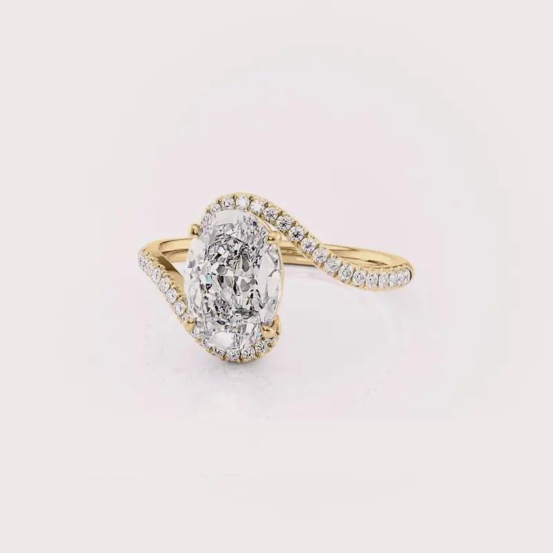 แหวนหมั้นและแต่งงานเพชรทรงรีเพาะเลี้ยงในห้องปฏิบัติการ ได้รับการรับรองจาก IGI ดีไซน์แบบ Split Shank พร้อมวงแหวนซ่อนรอบเพชร ตัวเรือนทองคำ 9K สีโรสโกลด์/ไวท์โกลด์ และสีเยลโลว์โกลด์