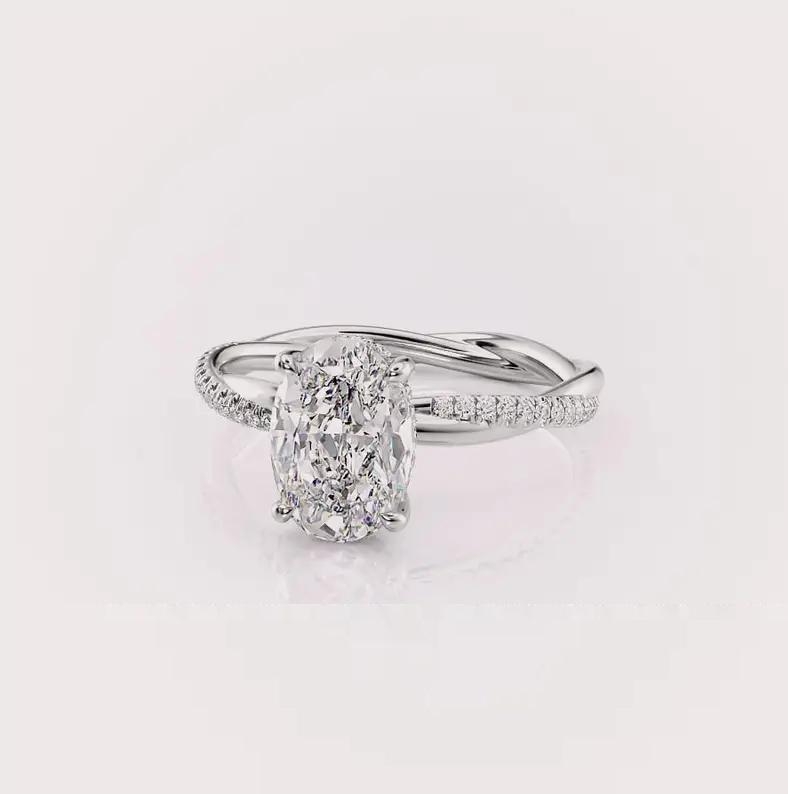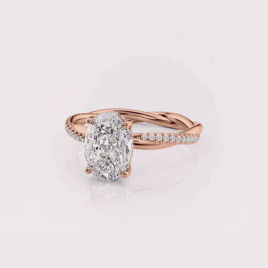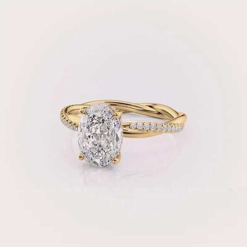 แหวนหมั้นเพชรทรงรีเพาะเลี้ยงในห้องปฏิบัติการ ได้รับการรับรองจาก IGI ตัวเรือนทองคำ 9K สีโรสโกลด์/ไวท์โกลด์/เยลโลว์โกลด์ แบบวงแหวนเกลียวประดับเพชร