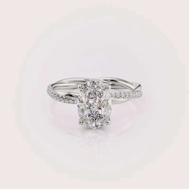 แหวนเพชรแล็บทรงไข่ ตัวเรือนบิดเกลียว