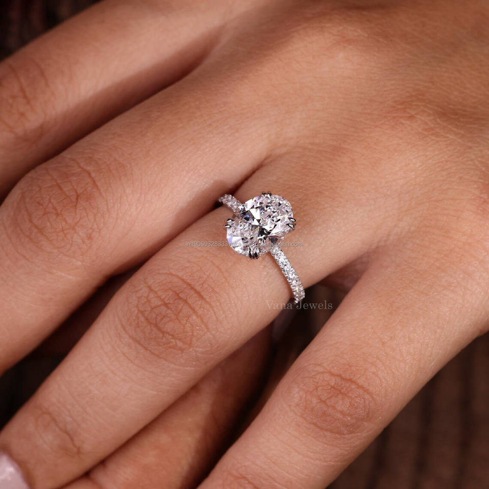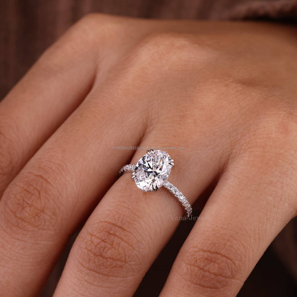 Igi แหวนหมั้นเพชรรูปวงรีขนาด18K ประดับทองสีขาวแหวนแต่งงานพร้อมรัศมีที่ซ่อนไว้สำหรับเธอได้รับการรับรองจากห้องปฏิบัติการ