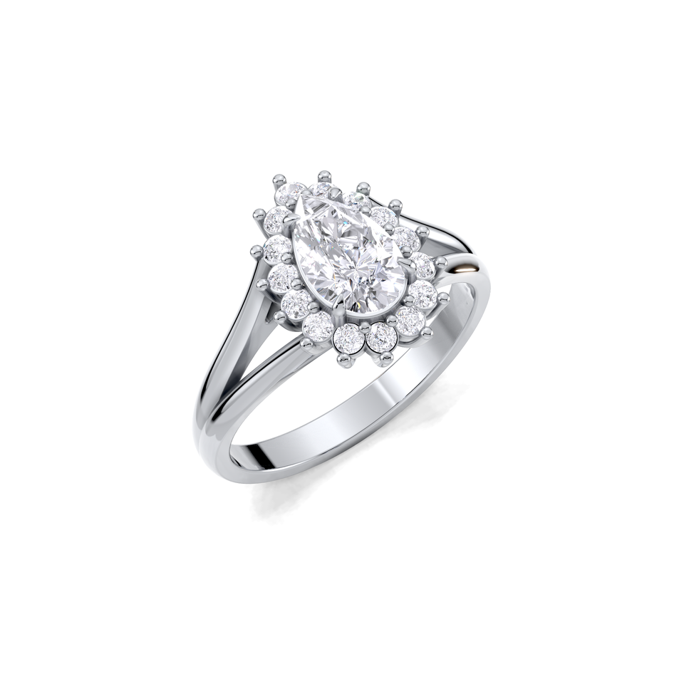 แหวนแต่งงานฮาโลแบบแยกก้านเพชรสำหรับปลูกในห้องปฏิบัติการได้รับการรับรอง IGI สีเหลือง/ขาวและโรสโกลด์14K
