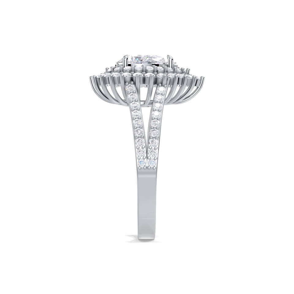 IGI Certified Pear Cut Lab Grown Diamond Double Halo Split Diamond Shank Engagement-Wedding Ring in Solid 925 Sterling Silver