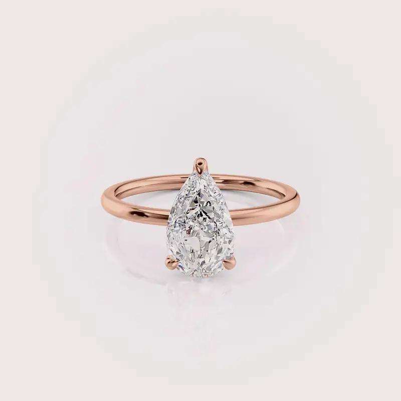 Pear Shape Lab Diamond Ring with Hidden Diamond Accent