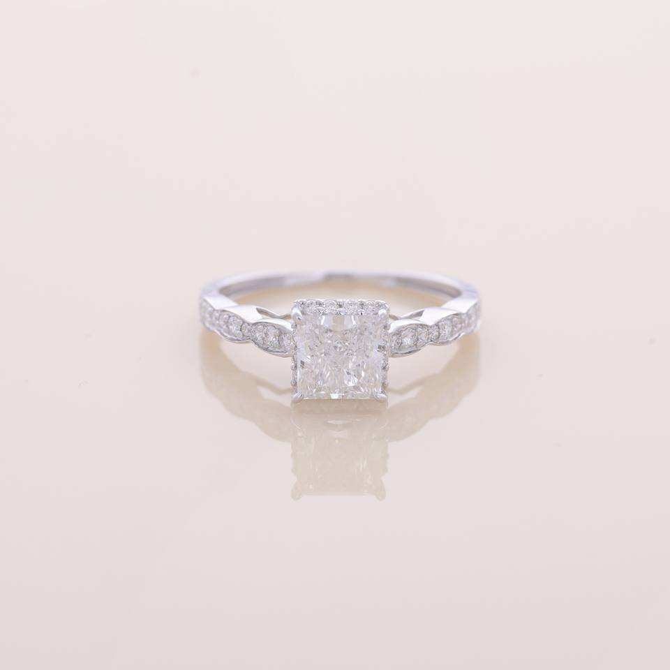 แหวนหมั้นและแต่งงานเพชรทรงปรินเซสคัทเพาะเลี้ยงในห้องปฏิบัติการ ได้รับการรับรองจาก IGI พร้อมวงแหวนแบบวินเทจประดับเพชรแบบ Pave บนตัวเรือนเงินแท้ 925