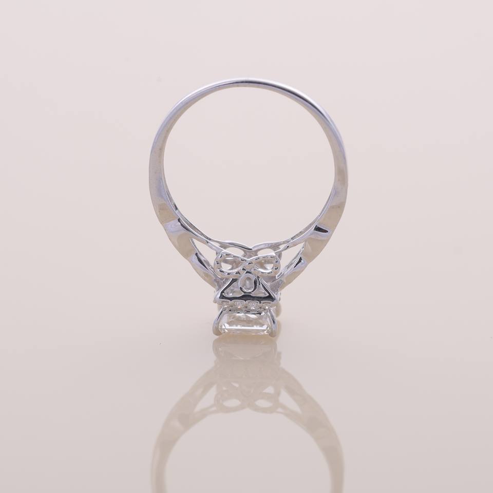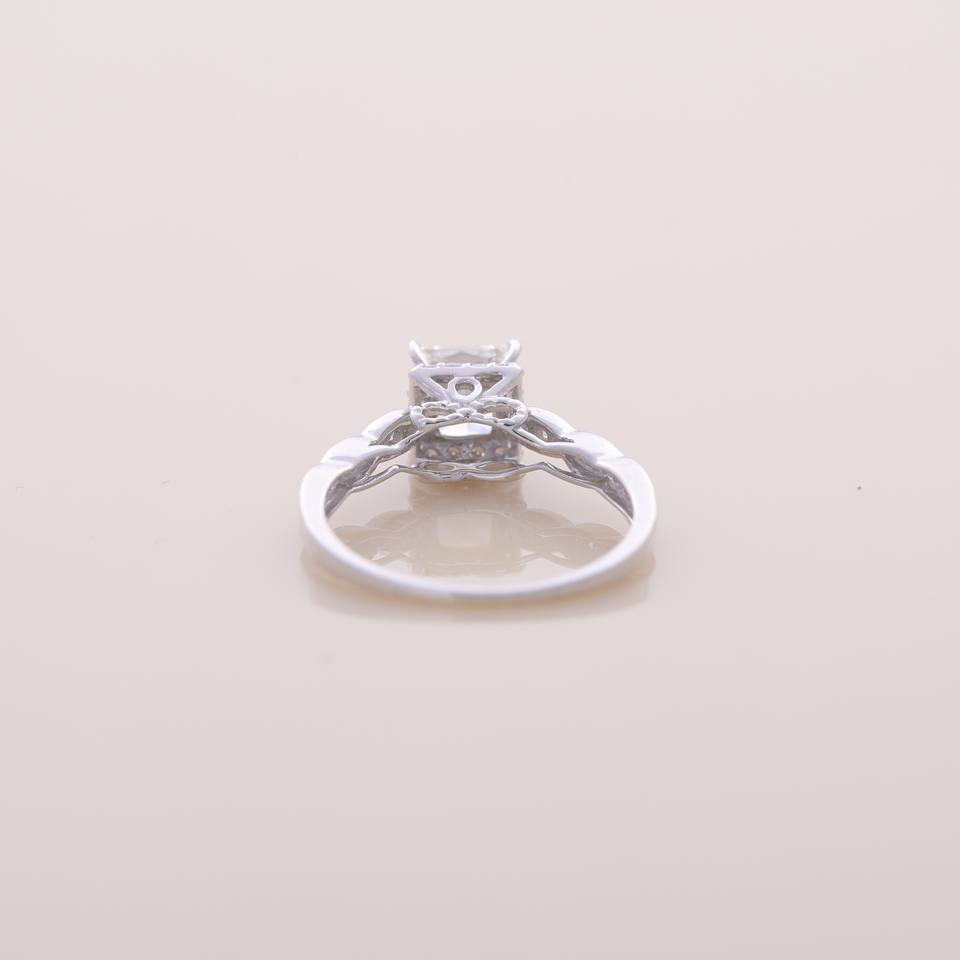 แหวนเพชรทรงปรินเซสคัทเพาะเลี้ยงในห้องปฏิบัติการ ได้รับการรับรองจาก IGI พร้อมวงแหวนแบบวินเทจประดับเพชรแบบพาเว่ ทองคำขาว/โรสโกลด์/เหลือง 14K สำหรับงานหมั้นและงานแต่งงาน