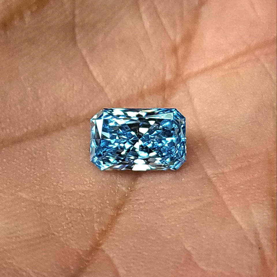 เพชรทรงรัศมีสีฟ้าแฟนซี ได้รับการรับรองจาก IGI เพาะเลี้ยงในห้องปฏิบัติการ สำหรับทำเครื่องประดับ มีจำหน่ายทุกขนาดในราคาประหยัด