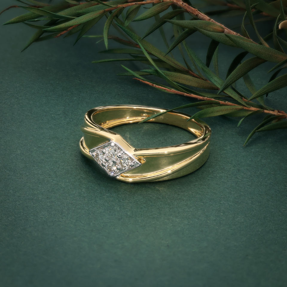 Igi แหวนเพชรสำหรับผู้ชายที่ทำจากหินสี่ก้อนเจียระไนเป็นของขวัญแต่งงานสำหรับสามีของคุณพ่อสวมใส่ทุกวันใน18KT ทอง
