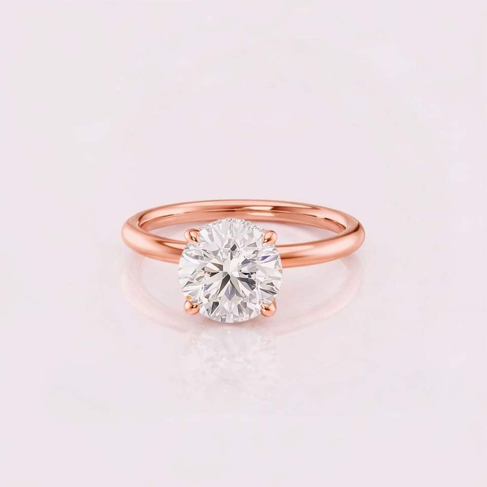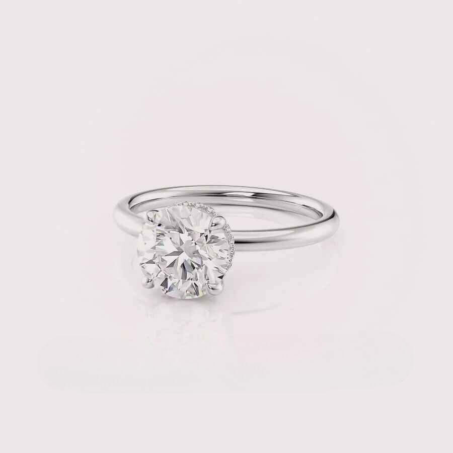 IGI Round Cut Lab Grown Diamond Solitaire Ring with Hidden Halo