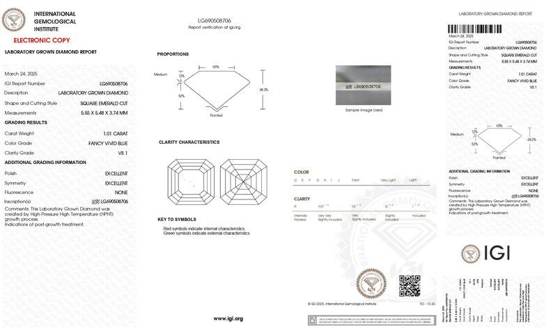 เพชรหลวมเพาะเลี้ยงในห้องปฏิบัติการ IGI Certified VS Clarity สีฟ้าสดใส 5 กะรัต ทรง Asscher ราคาขายส่ง B2B