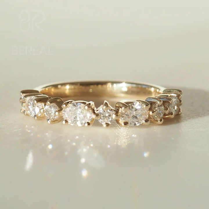 แหวนแต่งงานเพชร CVD รับรองโดย IGI แบบ Eternity แหวนเงินแท้ 925 ประดับเพชร Oval แหวนครบรอบแต่งงานเพชรสร้างในห้องปฏิบัติการ