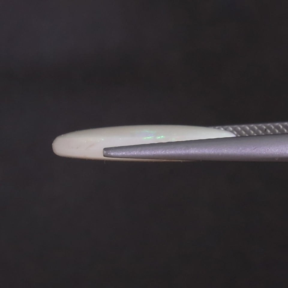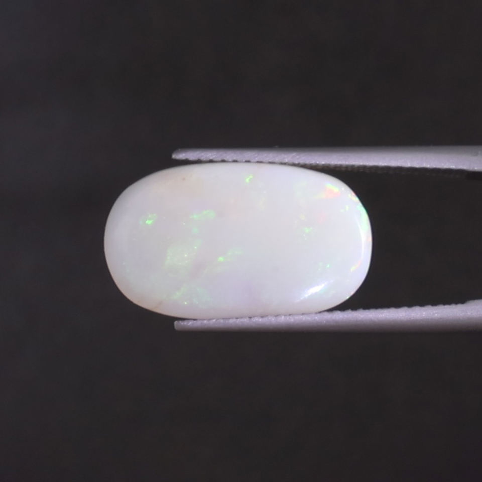 โอปอลธรรมชาติสีขาวคุณภาพดี รับรองโดย IGI น้ำหนัก 5.01 กะรัต รูปทรงคุชชั่น ขนาด 18.5x11.5 มม. ขัดเงาด้วยมือ สีอ่อน