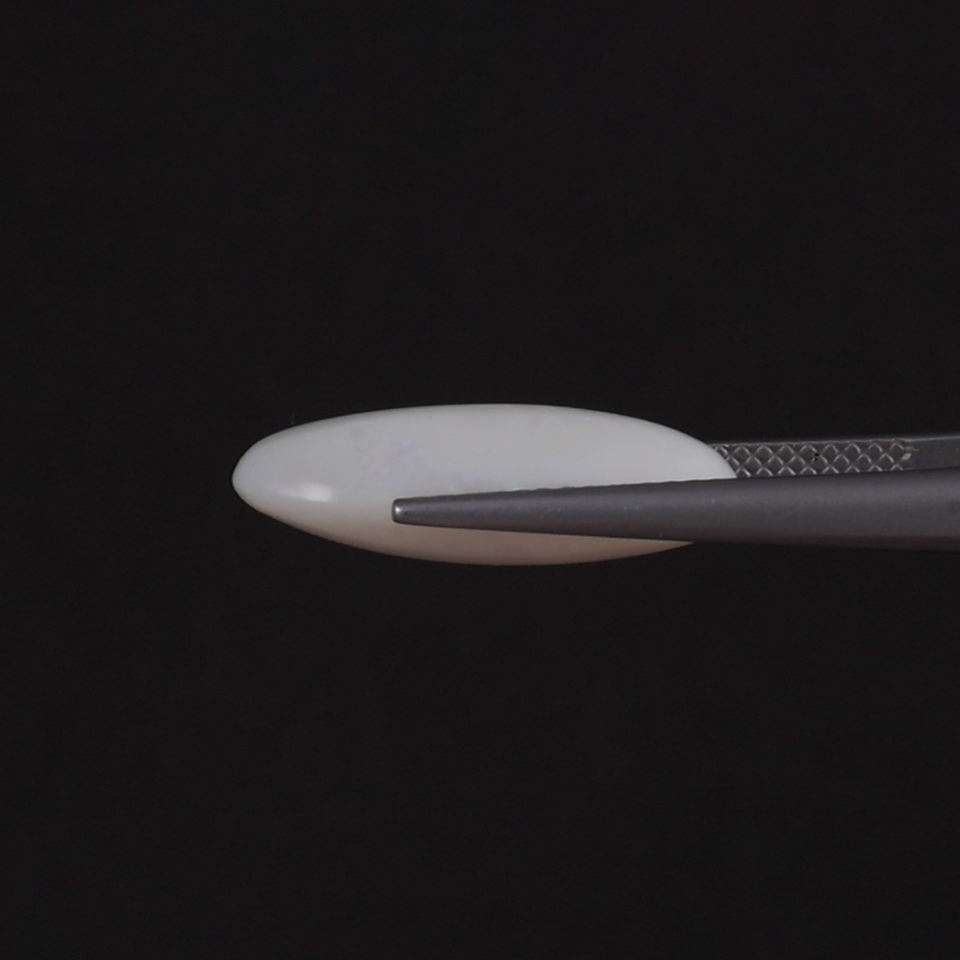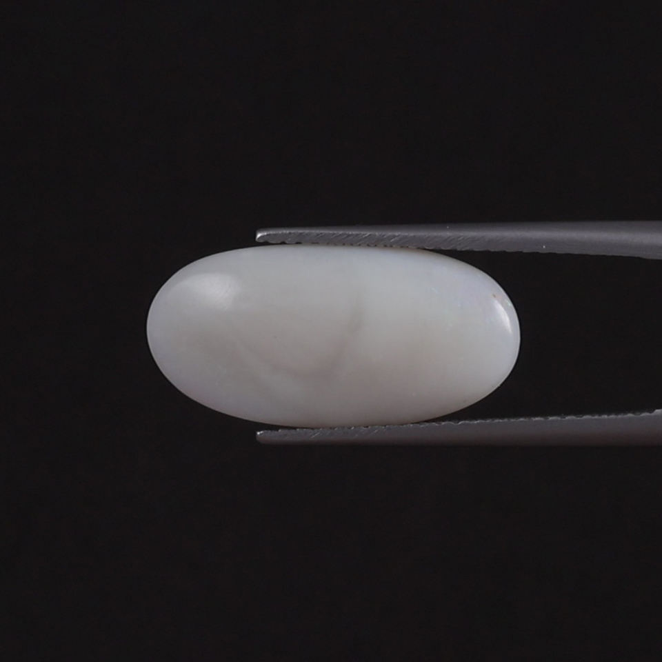 โอปอลธรรมชาติสีขาวรับรองโดย IGI น้ำหนัก 5.99 กะรัต รูปทรงวงรี ขนาด 19.5x10 มม. ผ่านการเคลือบแว็กซ์/น้ำมัน คุณภาพดี ขนาด 6 มม. สำหรับทำเครื่องประดับ