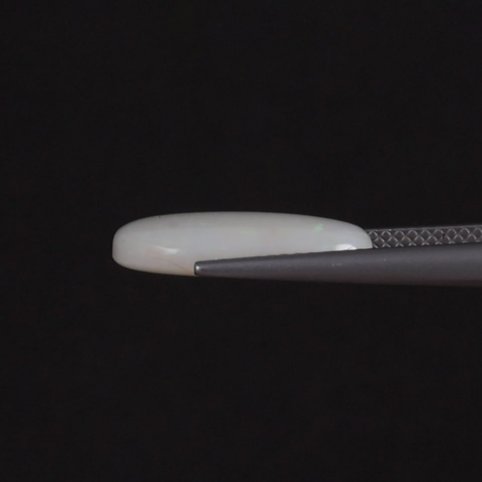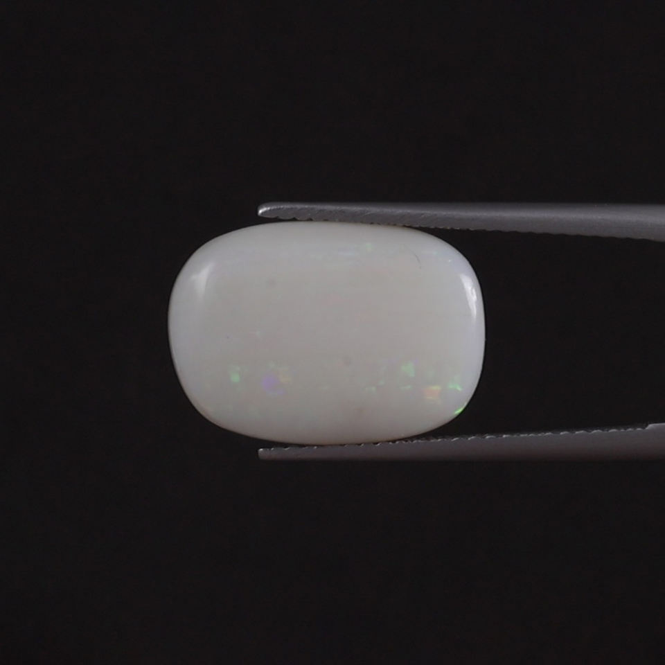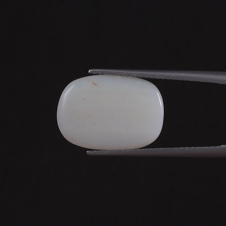 โอปอลธรรมชาติสีขาวรับรองโดย IGI น้ำหนัก 5.31 กะรัต รูปทรงคุชชั่น ขนาด 16.5x12 มม. ขัดด้วยมือ ผ่านการเคลือบแว็กซ์/น้ำมัน
