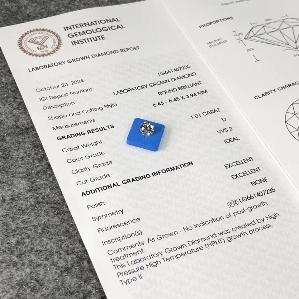 Igi เพชรที่ปลูกในห้องปฏิบัติการที่ได้รับการรับรองจาก1CT 1.3ct 1.5ct VVS1 D VVS2 VS1 VS2เพชรที่ปลูกในห้องปฏิบัติการขายส่งมีการรับรอง GIA