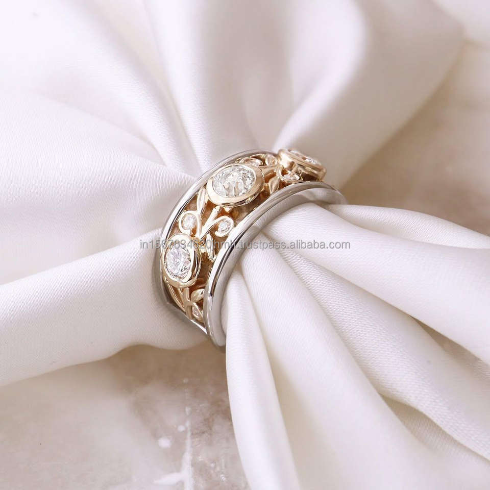 Igi/gia แล็บตัดเพชรวินเทจ14K สีเหลืองงานแต่งงาน/หมั้นแหวน unisex สีขาวทองงานครบรอบปาร์ตี้-แหวนที่คู่ควร