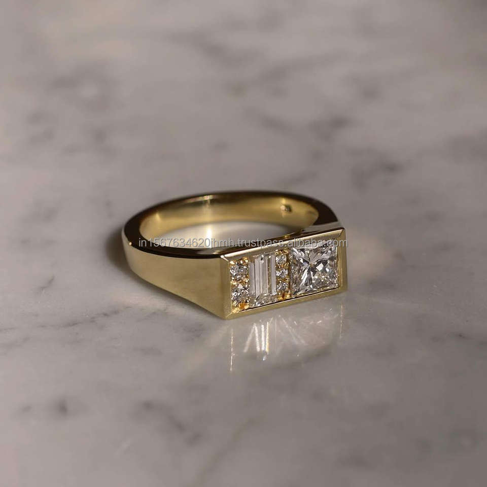 Igi/gia แล็บตัดเพชรวินเทจ14K สีเหลืองแหวนแต่งงาน/งานหมั้นใส่ได้ทั้งชายและหญิงสีขาวทองคุณภาพดีสำหรับงานปาร์ตี้ครบรอบ-คุ้มค่า