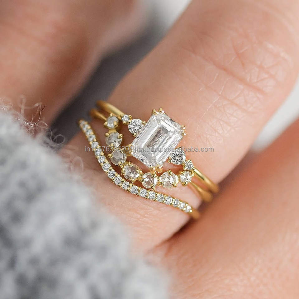 Igi/gia แล็บตัดเพชรวินเทจ14K สีเหลืองแหวนแต่งงาน/งานหมั้นใส่ได้ทั้งชายและหญิงสีขาวทองคุณภาพดีสำหรับงานปาร์ตี้ครบรอบ-คุ้มค่า