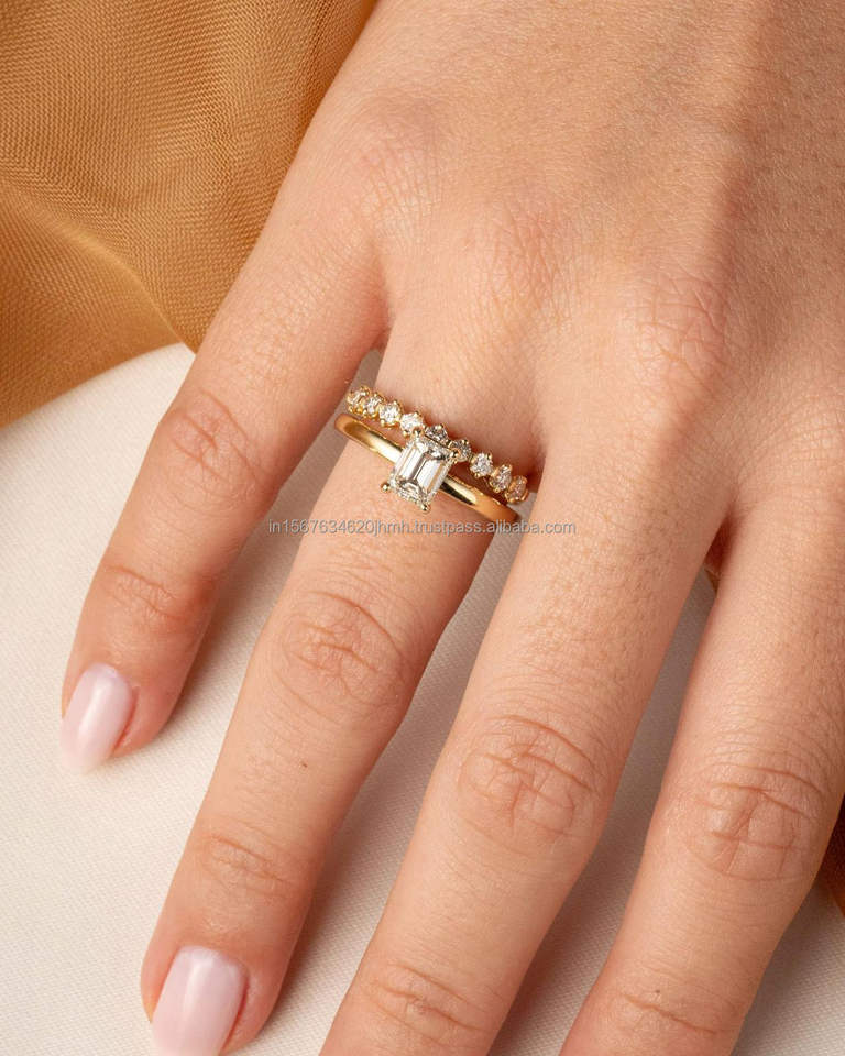 Igi/gia แล็บตัดเพชรวินเทจ14K สีเหลืองแหวนแต่งงาน/งานหมั้นใส่ได้ทั้งชายและหญิงสีขาวทองคุณภาพดีสำหรับงานปาร์ตี้ครบรอบ-คุ้มค่า
