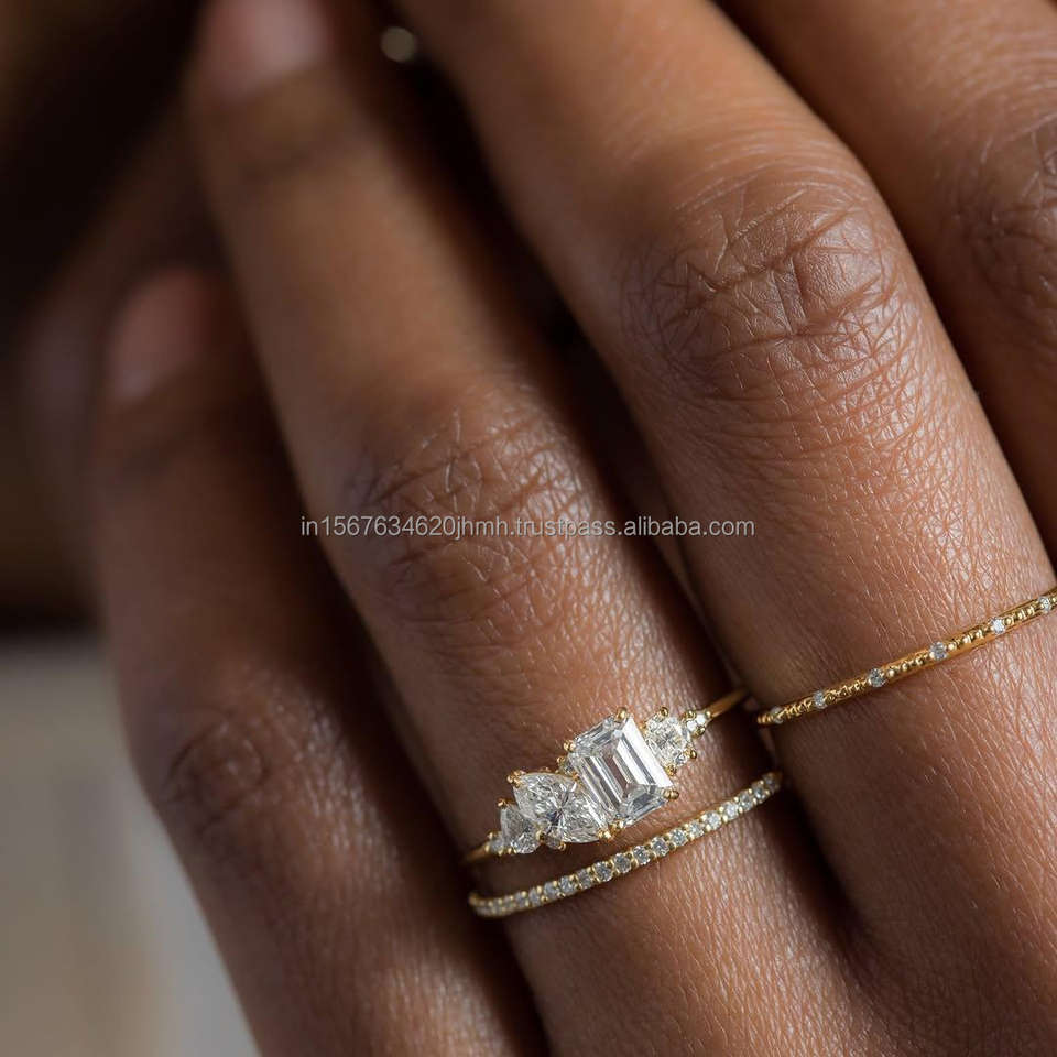 แหวนแต่งงาน/หมั้นเพชรทรงวินเทจ 14k สีเหลืองทอง ผลิตในห้องปฏิบัติการ IGI/GIA สำหรับทั้งชายและหญิง ทองคำขาวคุณภาพสูง เหมาะสำหรับงานฉลองครบรอบ