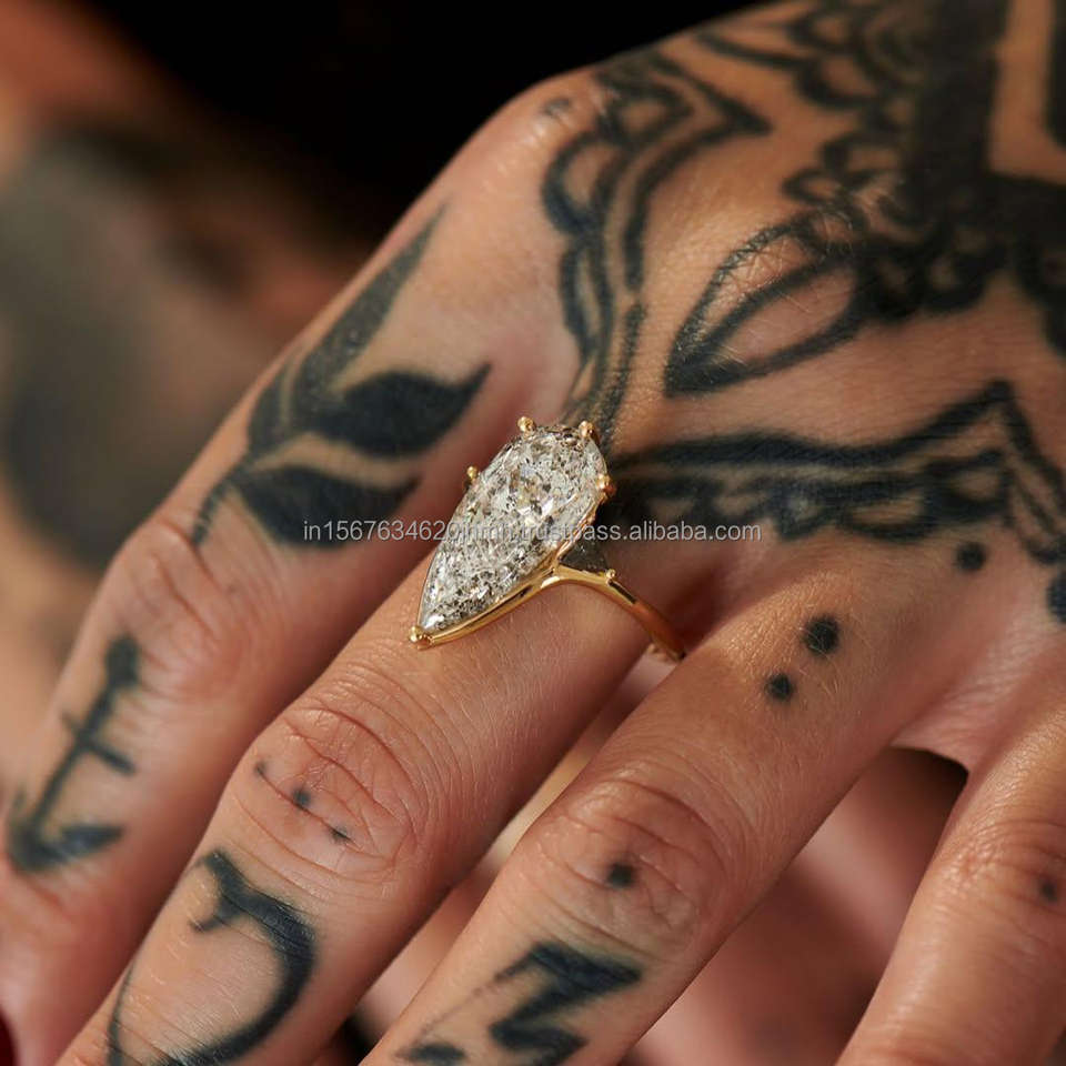 แหวนแต่งงาน/หมั้นเพชรทรงวินเทจ 14k สีเหลืองทอง ผลิตในห้องปฏิบัติการ IGI/GIA สำหรับทั้งชายและหญิง ทองคำขาวคุณภาพสูง เหมาะสำหรับงานฉลองครบรอบ