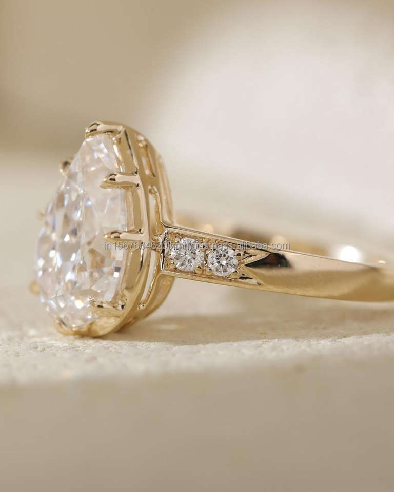 แหวนแต่งงาน/หมั้นเพชรทรงวินเทจ 14k สีเหลืองทอง ผลิตในห้องปฏิบัติการ IGI/GIA สำหรับทั้งชายและหญิง ทองคำขาวคุณภาพสูง เหมาะสำหรับงานฉลองครบรอบ