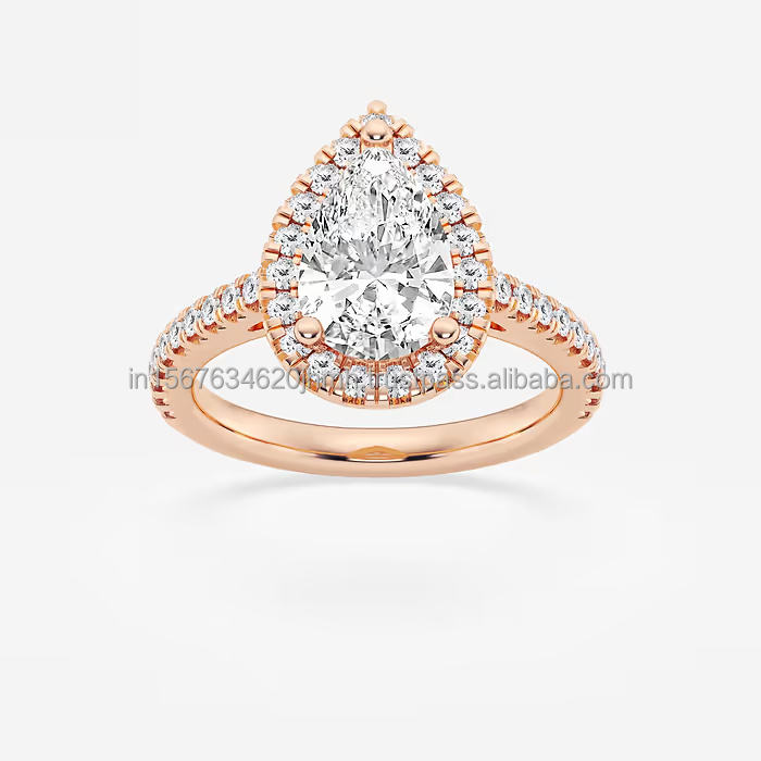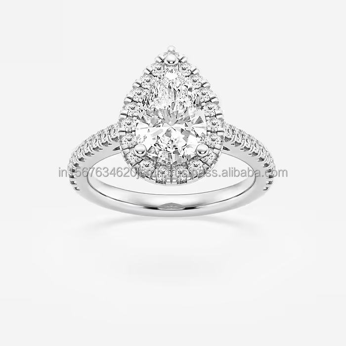 เพชรทรงลูกแพร์เพาะเลี้ยงธรรมชาติ IGI ดีไซน์วินเทจสั่งทำพิเศษสำหรับงานแต่งงาน งานฉลองครบรอบ งานปาร์ตี้ ปริมาณสั่งซื้อขั้นต่ำน้อย 14K