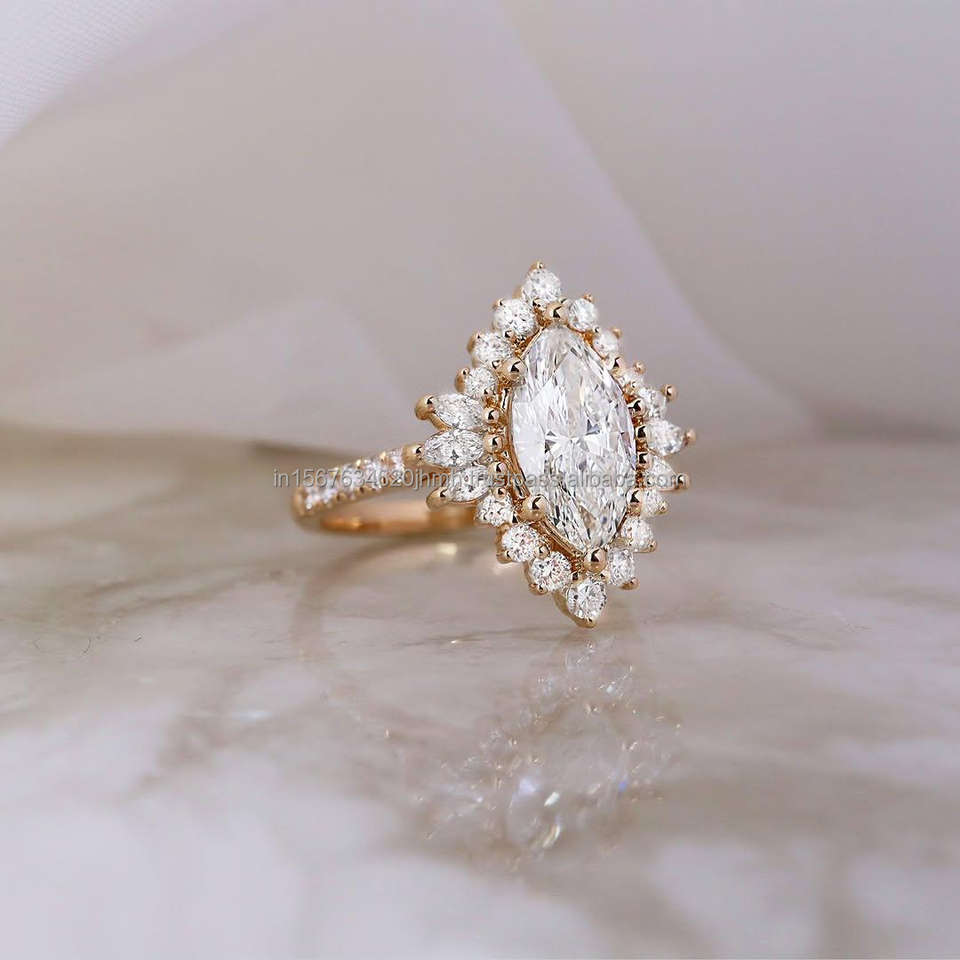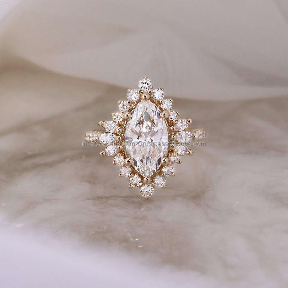 Igi/gia วงแหวนแต่งงาน/แหวนหมั้นเพชรแนววินเทจ14K สีเหลืองสีขาวทองสีขาว/แต่งงานใช้ได้ทั้งผู้หญิงและผู้ชาย