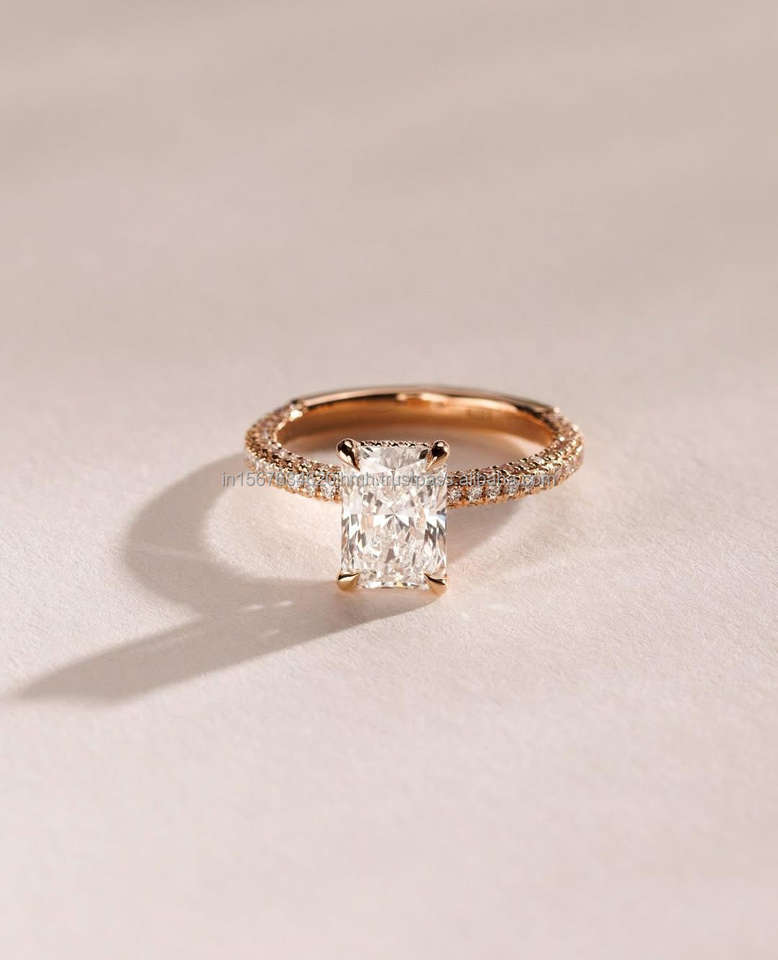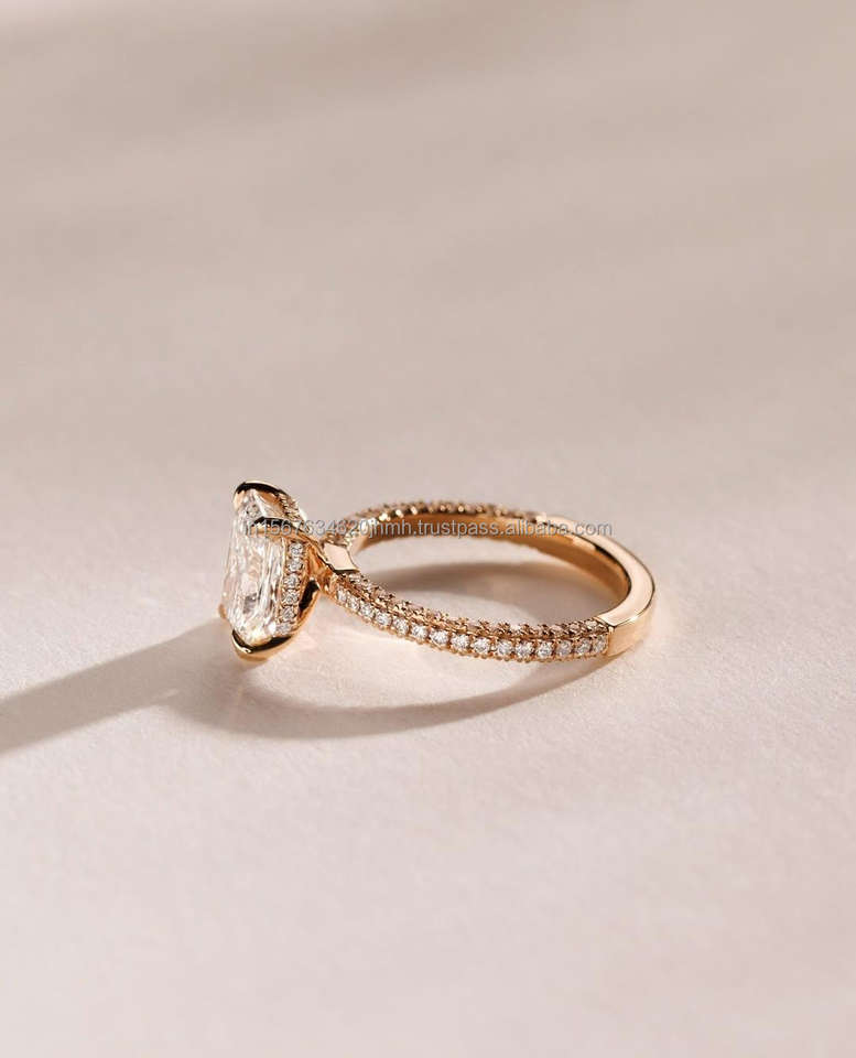 แหวนเพชรทรงเรเดียนท์ ผลิตในห้องปฏิบัติการ IGI/GIA ทองคำแท้ 14k สีเหลือง สำหรับงานแต่งงาน/หมั้น แหวนสำหรับทุกเพศ แหวนสวยงามสำหรับงานฉลองครบรอบ