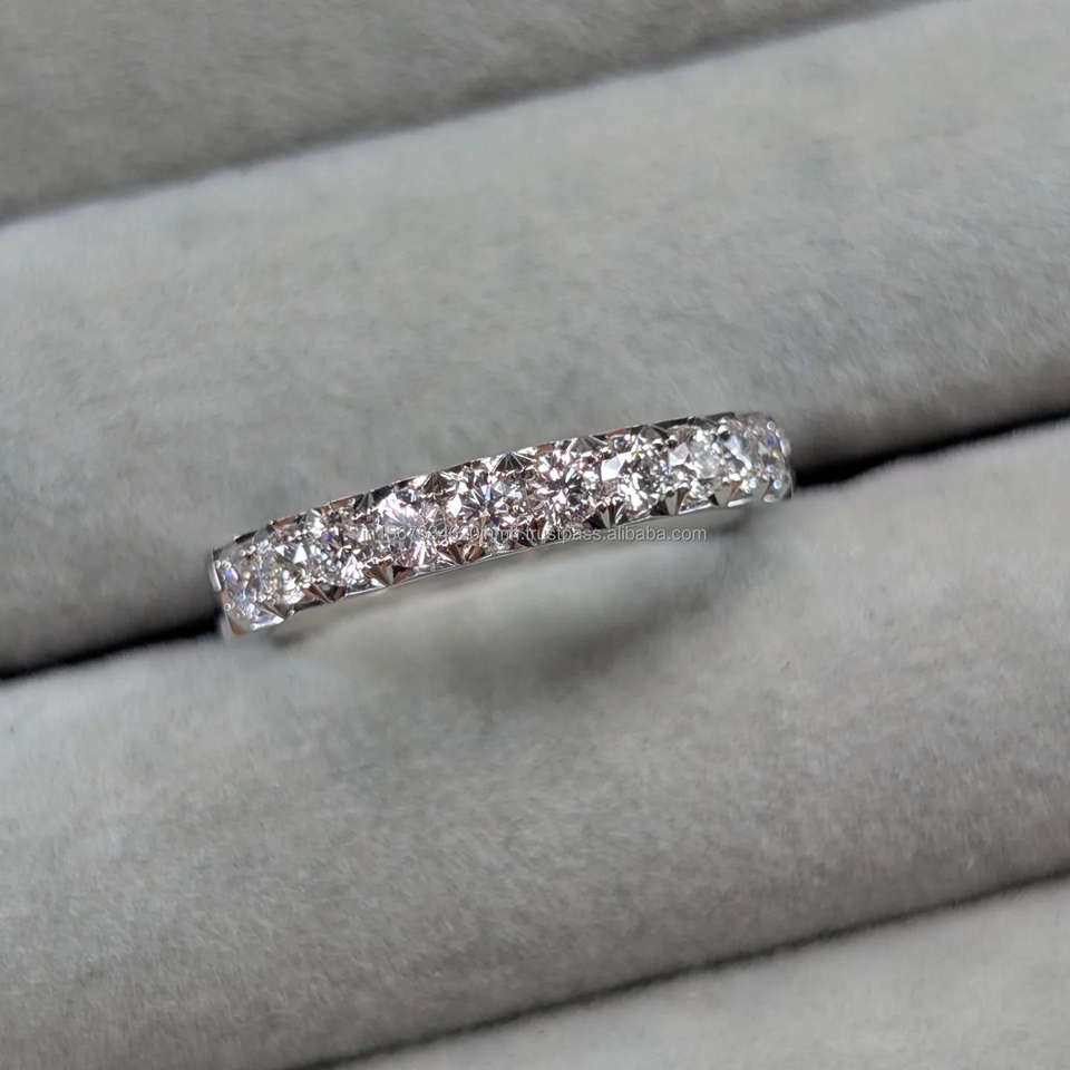 Igi/gia แหวนแต่งงานทองขาว14K ประดับเพชรกลมเหมาะสำหรับใส่ได้ทั้งชายและหญิงเหมาะสำหรับเป็นของขวัญในวันครบรอบและงานปาร์ตี้