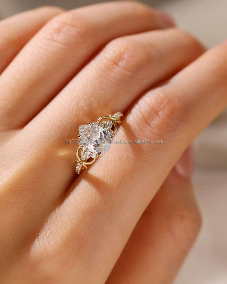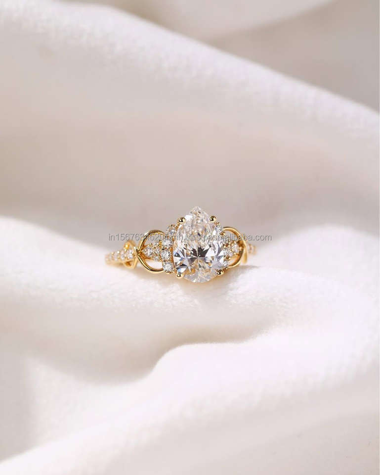 Igi/gia Lab เติบโตวินเทจ14K สีเหลืองทองแต่งงาน/แหวนหมั้นเพชรลูกแพร์ unisex สมบูรณ์แบบครบรอบและปาร์ตี้ของขวัญ