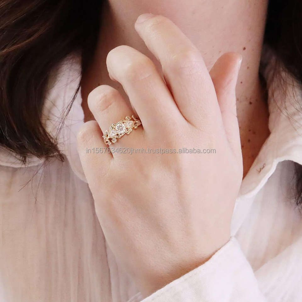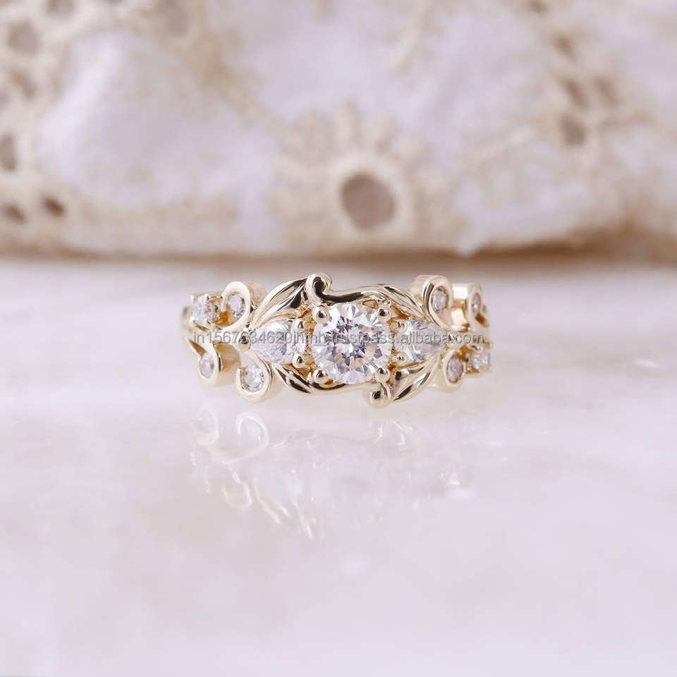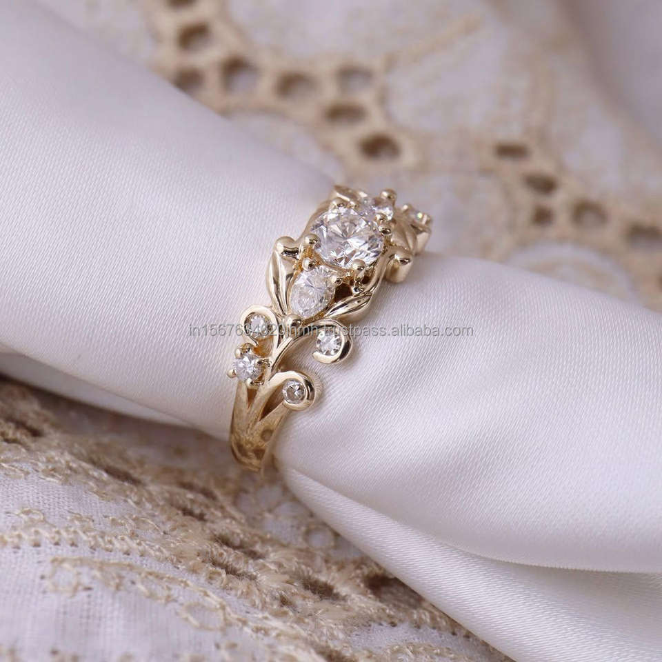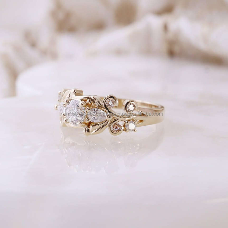 Igi/gia แล็บปลูกวินเทจ14K สีขาวทองแต่งงาน/หมั้นแหวนเพชรสำหรับทุกเพศของขวัญงานปาร์ตี้ครบรอบลูกแพร์ตัดเพชร