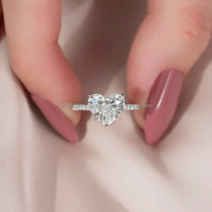 แหวนแต่งงาน/หมั้นเพชรขาวเพาะเลี้ยง IGI/GIA 14k สำหรับทุกเพศ ทรงหัวใจสีขาว สำหรับงานฉลองครบรอบ ของขวัญ