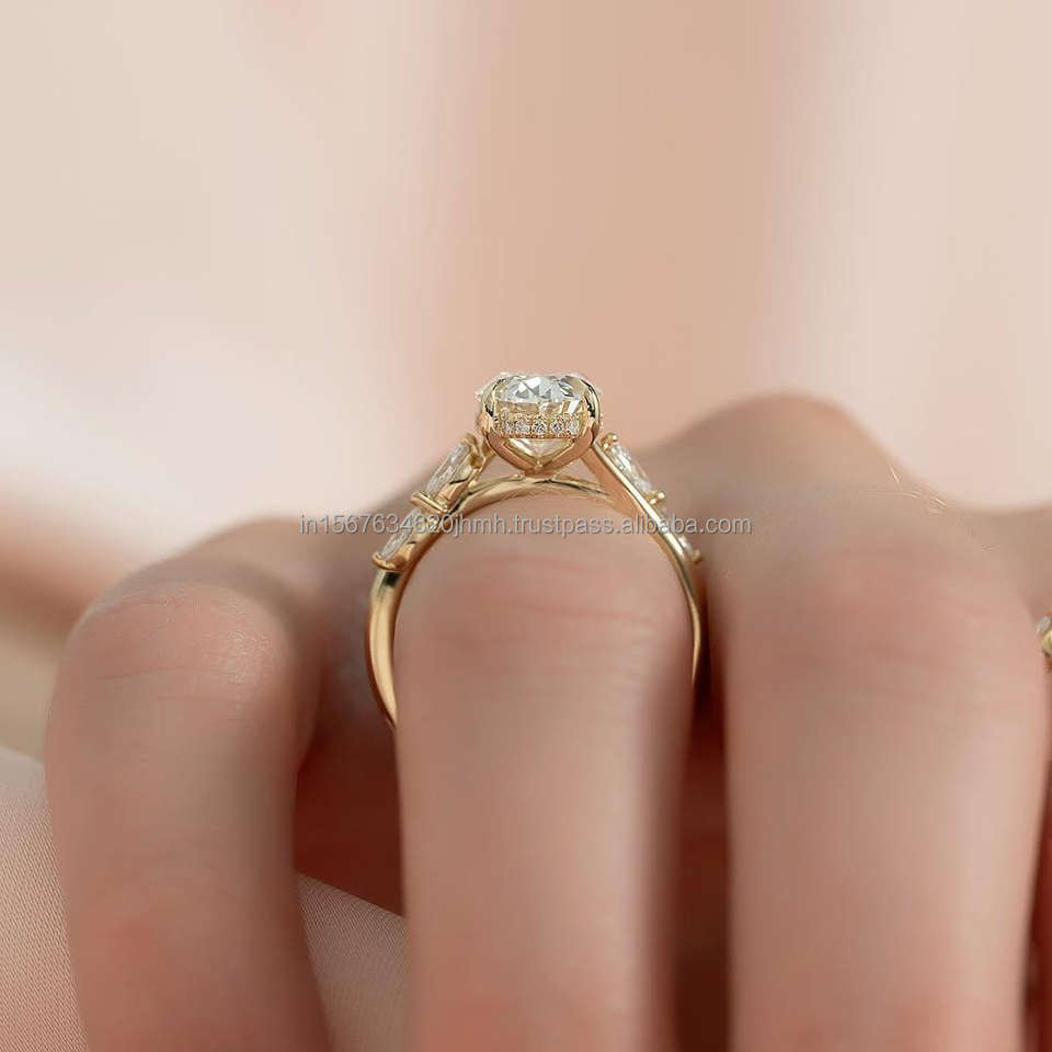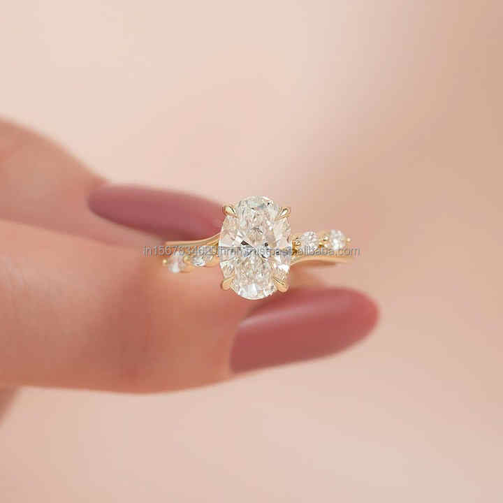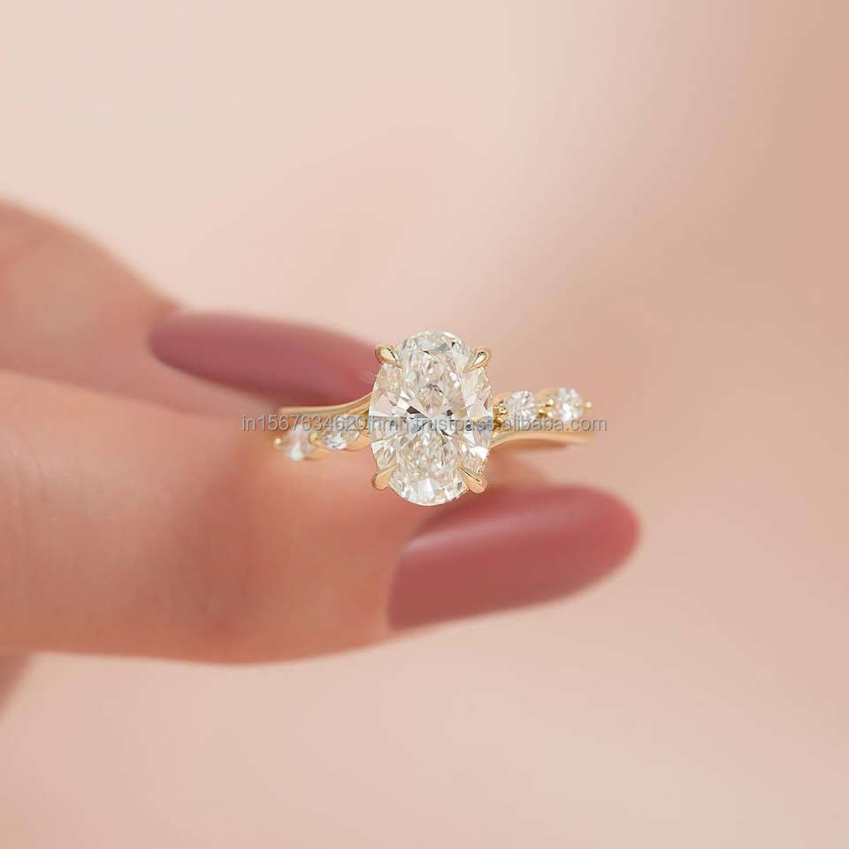 แหวนแต่งงาน/หมั้นเพชรขาวเพาะเลี้ยงในห้องปฏิบัติการ IGI/GIA ทองคำแท้ 14k ทรงรี สำหรับทุกเพศ ทองเหลือง สำหรับงานฉลองครบรอบ ของขวัญ