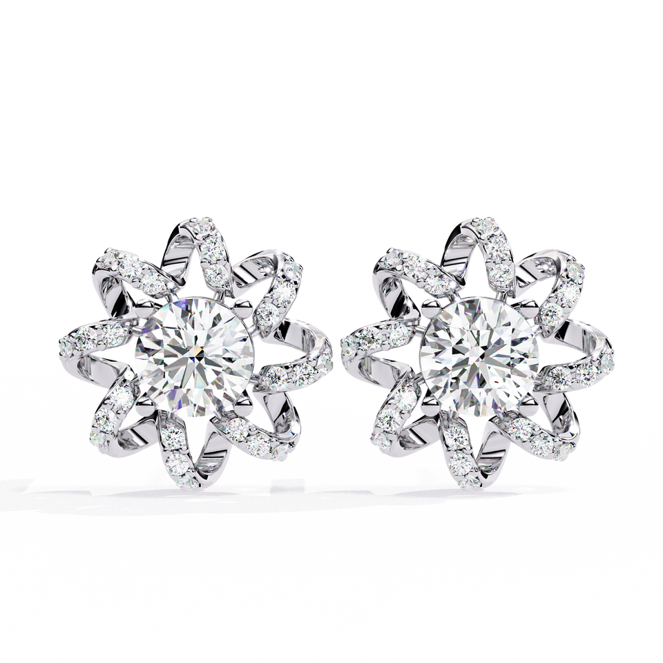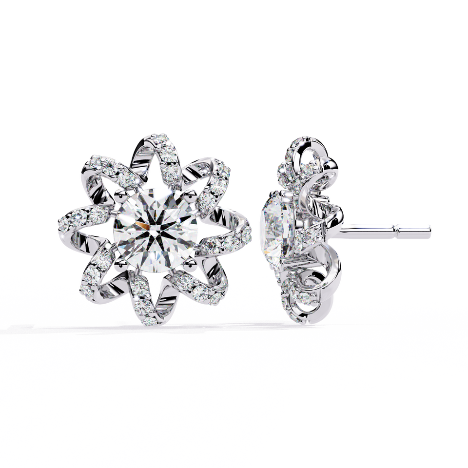 ต่างหูเพชรเลี้ยงในห้องปฏิบัติการ IGI Gia Certified 1-2 กะรัต HPHT CVD VVS ทองคำแท้ 14k 18k ต่างหูรูปดอกไม้ สำหรับเป็นของขวัญจากอินเดีย