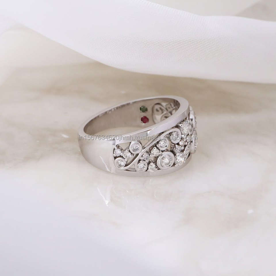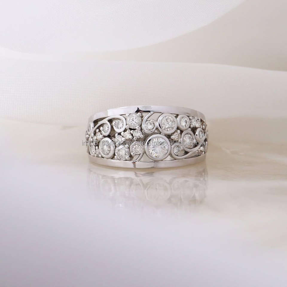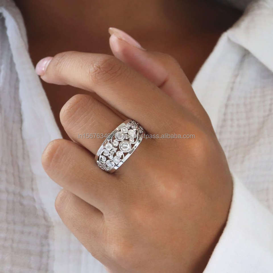 แหวนทองคำขาว 14k ทรงแท่งประดับเพชรซิคอนทรงบริลเลียนท์คัทจาก IGI Lab Grown ดีไซน์ทันสมัย ทำมือ เหมาะสำหรับงานแต่งงาน/งานหมั้น สำหรับทั้งชายและหญิง