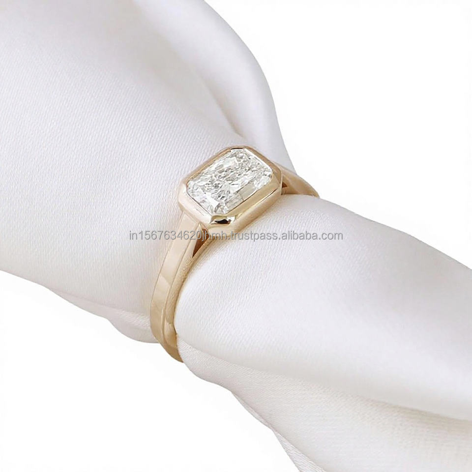 แหวนแต่งงาน/หมั้นเพชรทรงวินเทจ IGI/ เพชรเพาะเลี้ยง 14k สีเหลือง ทำมือ ทองคำขาวอย่างดี สำหรับทั้งชายและหญิง เหมาะสำหรับงานฉลองครบรอบ