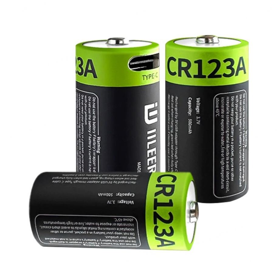 ก้อนแบตเตอรี่ลิเธียมไอออน3.7V CR123A CR2 280mAh 500mAh 1850mWh 1036mWh พร้อมการชาร์จ Type-C