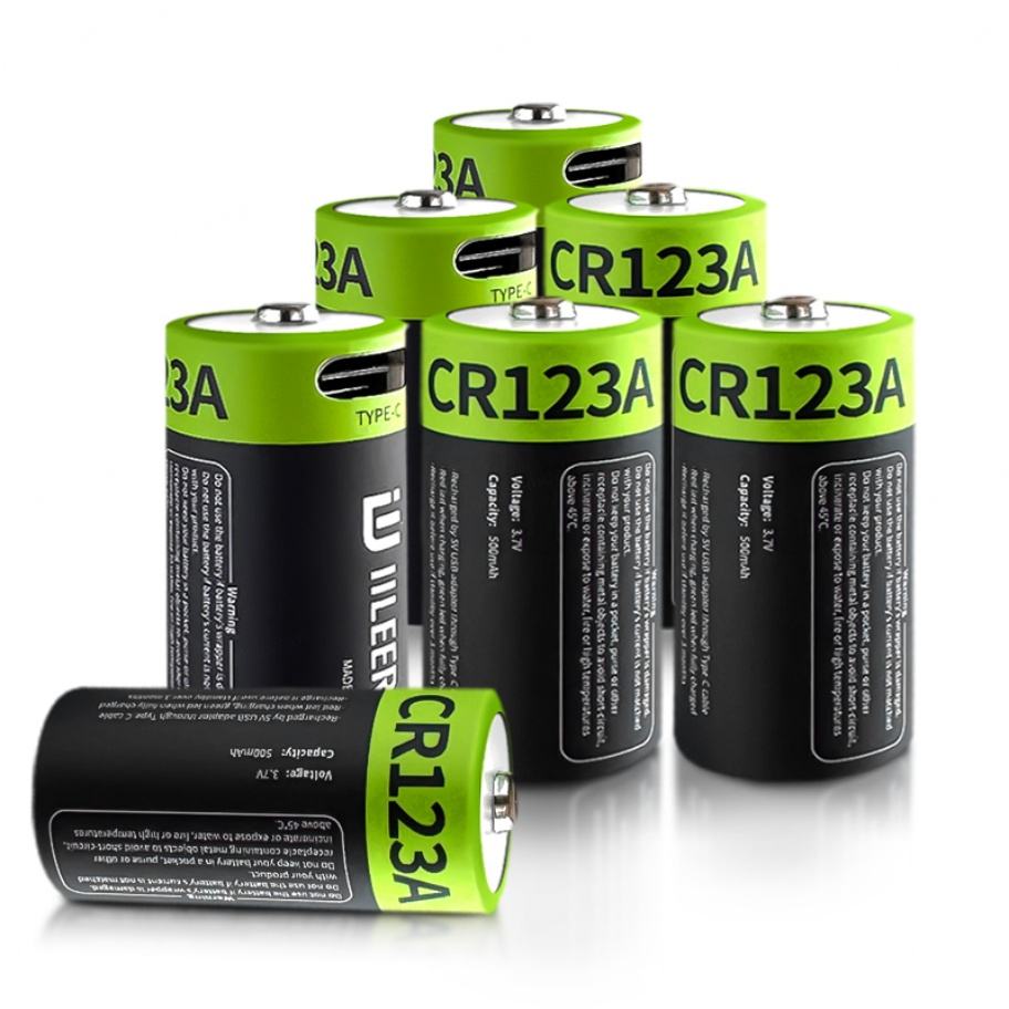 Iileer แบตเตอรี่ลิเธียมไอออน CR123A 1850mWh ชนิดชาร์จได้ชนิด C พอร์ต3.7V 500mAh แบตเตอรี่ลิเธียมไอออนพร้อมสายชาร์จ