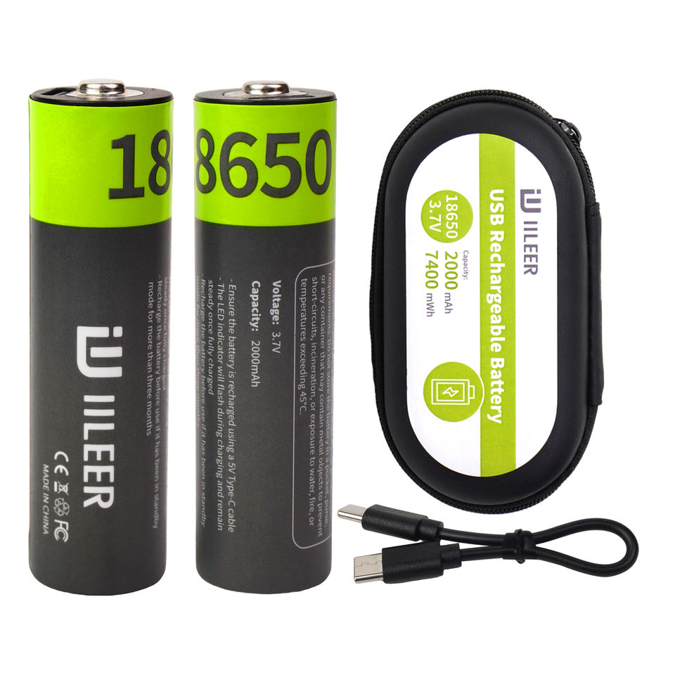 Iileer แบตเตอรี่ Li-ion 3.7V 18650 2000มิลลิแอมป์ชั่วโมง7400mWh แบตเตอรี่18650 1200ก้อน3.7โวลต์ออกแบบได้ตามต้องการ